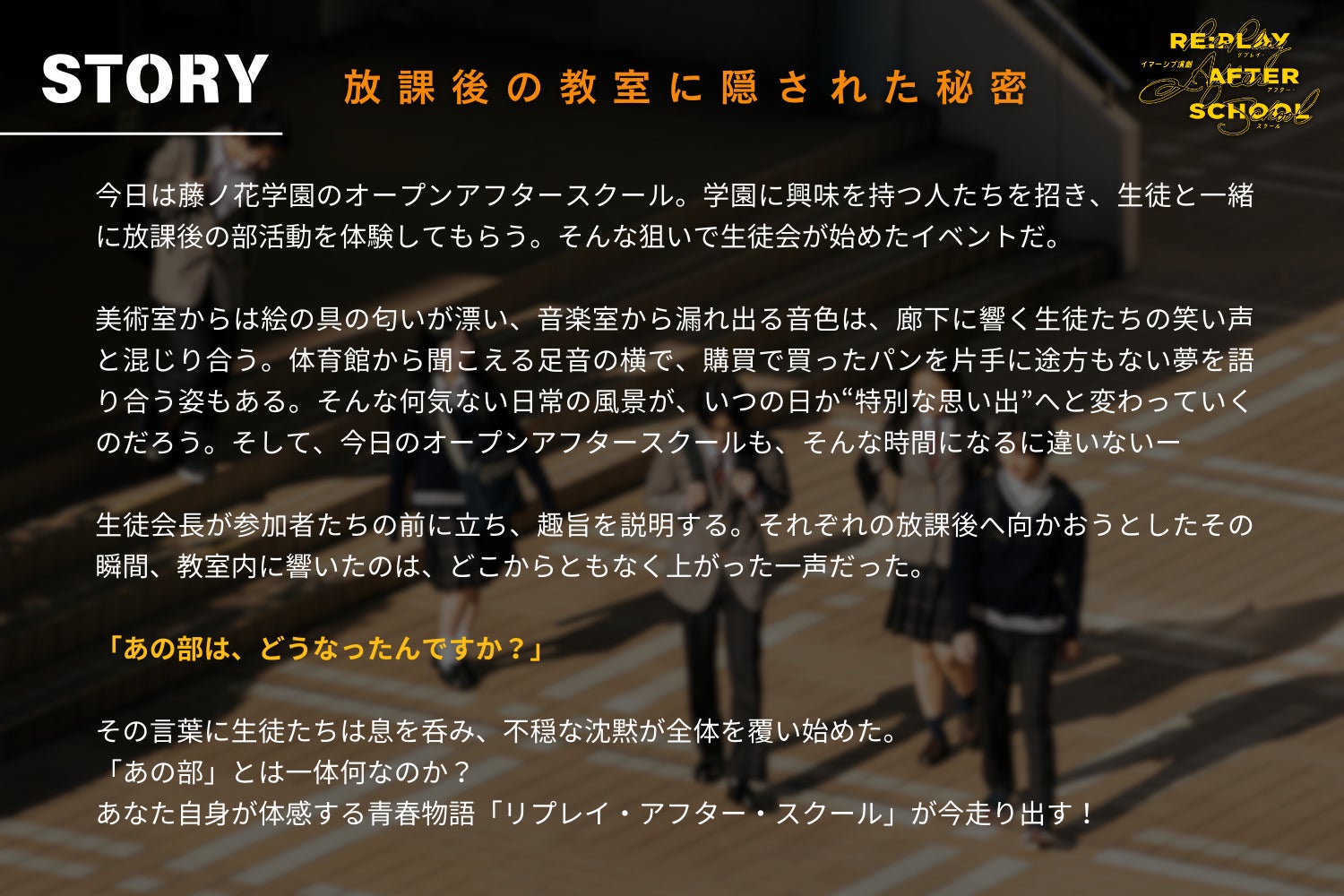 あなた自身が体感する青春物語「リプレイ・アフター・スクール」が今走り出す!