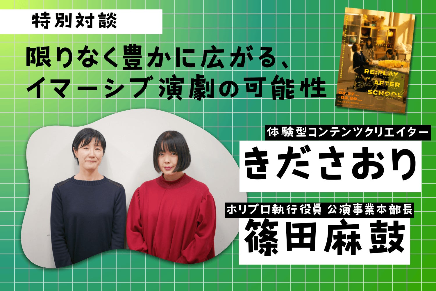 【チケット発売中】実際の校舎内を歩きながら“体験する”イマーシブ演劇『RE:PLAY AFTER SCHOOL』#放課後リプレイ を徹底解説!【きださおり×ホリプロ】
