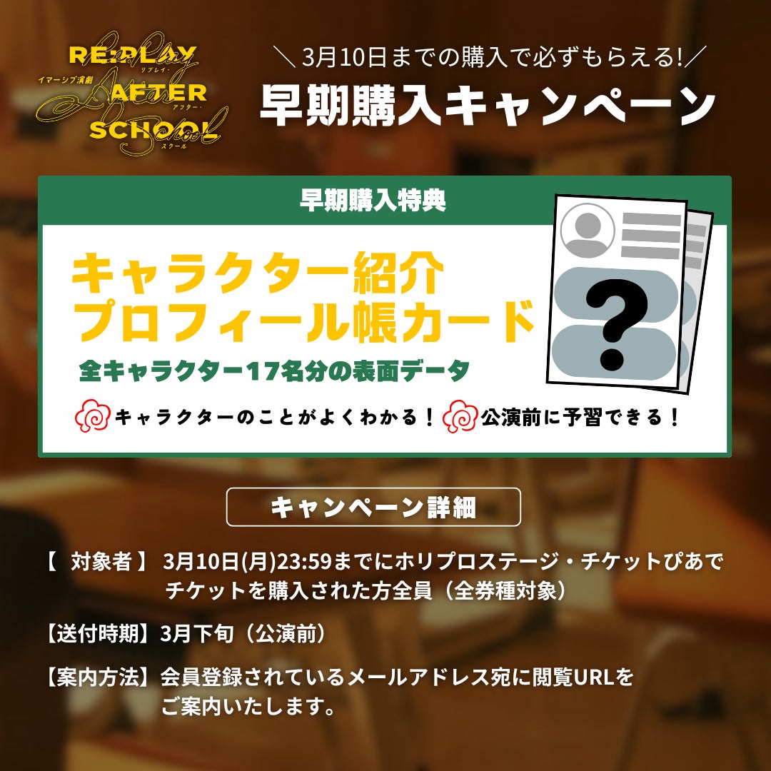 対象:3月10日(月)23:59までにホリプロステージ・チケットぴあでチケットを購入された方全員(全券種対象)