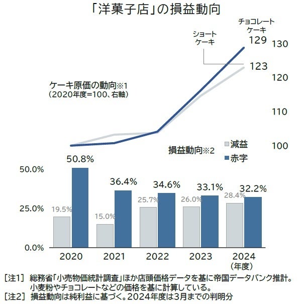 足元では、シーズン商品や新商品の投入頻度を高めることで来店を促し、ケーキ1個あたりの利益率を引き上げ、物価高を乗り切ろうとする洋菓子店も増えている。ただ、カカオなどの原材料価格は引き続き高騰が見込まれるなど経営環境は厳しく、2025年度も倒産増加が続く可能性がある。