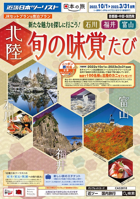 福井県、石川県、富山県とKNT-CTホールディングス株式会社(本社:東京都新宿区 社長:米田 昭正、以下、KNT-CT)は共同で、「ニッポン旅列島 北陸キャンペーン」を2022年10月1日より開始します。