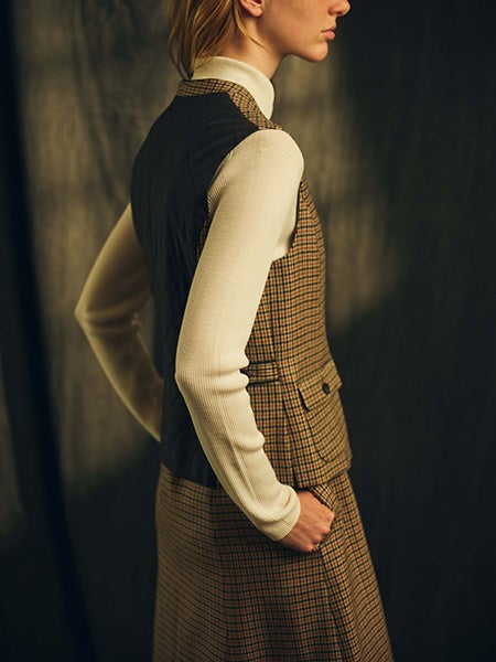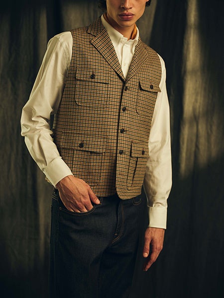 当時のウィメンズベストから着想を得てメンズ仕立てにアレンジ。丸みのある裾のカッティングと当時のディテールを再現した腰ポケットがポイント。ジャケットと合わせたアンサンブルベストとしての着こなしがおすすめです。