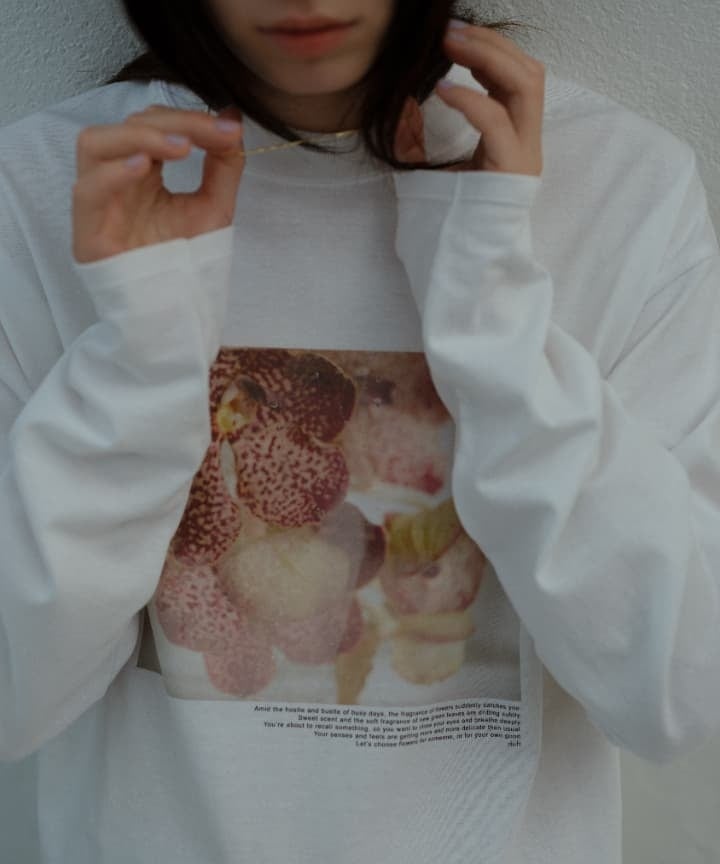 今回「duft」のオーナーが特別にフラワーアレンジメントを手がけ、その世界観を撮影したフォトTシャツやスカーフ、サロンのブランドフィルターを通して共同でデザインしたグラフィックTシャツ、