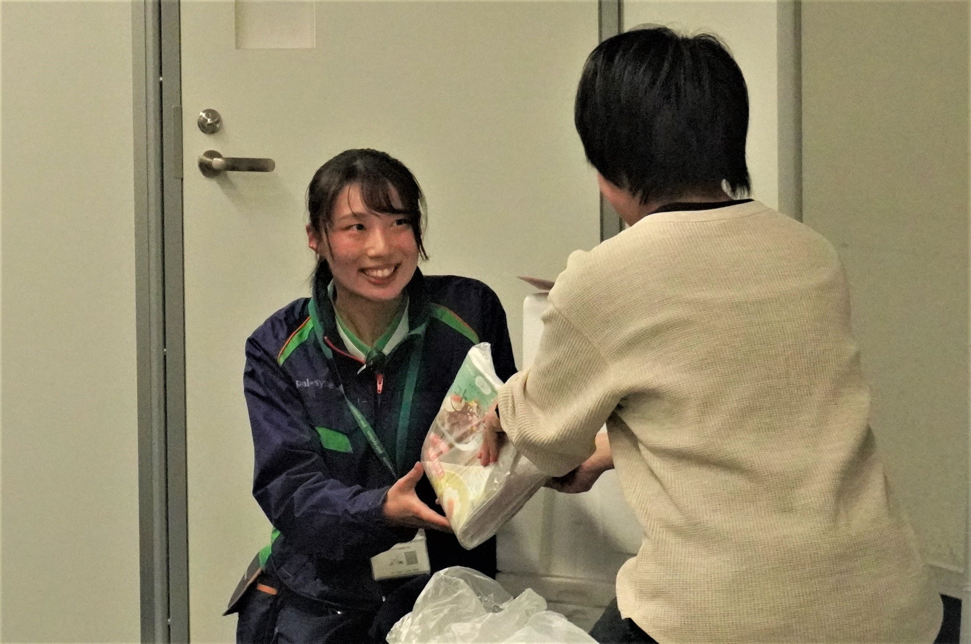 生協の宅配サービスは原則、玄関先で箱から商品を取り出し、利用者へ手渡します。置き配も選択できますが、次回配達時までの通い箱保管を避けるため、相対受取の希望者が多くいます。週1回、利用者と対面する配達担当はパルシステムの顔です。あいさつや声掛け、商品やリサイクル品、注文用紙などの受け渡しなど短時間で的確な対応が必要です。全職員が安心して受け取れるサービスを提供できるよう、各センターから選抜された代表者がこれらの接遇対応を競います。