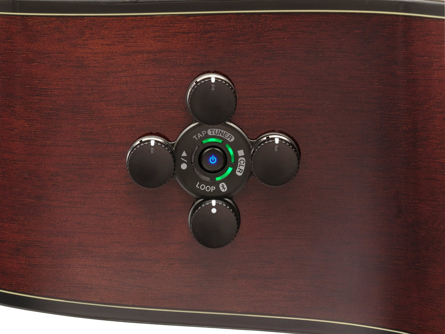 『TAS3 C』はBluetooth機能を搭載しています。お手持ちのスマートフォンやオーディオデバイスと接続すれば、ギター本体をスピーカー代わりにして、魅力的なサウンドでリスニングを楽しむこともできます。さらに、再生中の楽曲に合わせて同じギターで演奏することも可能で、プレイヤーにこれまでにない演奏体験を提供します。