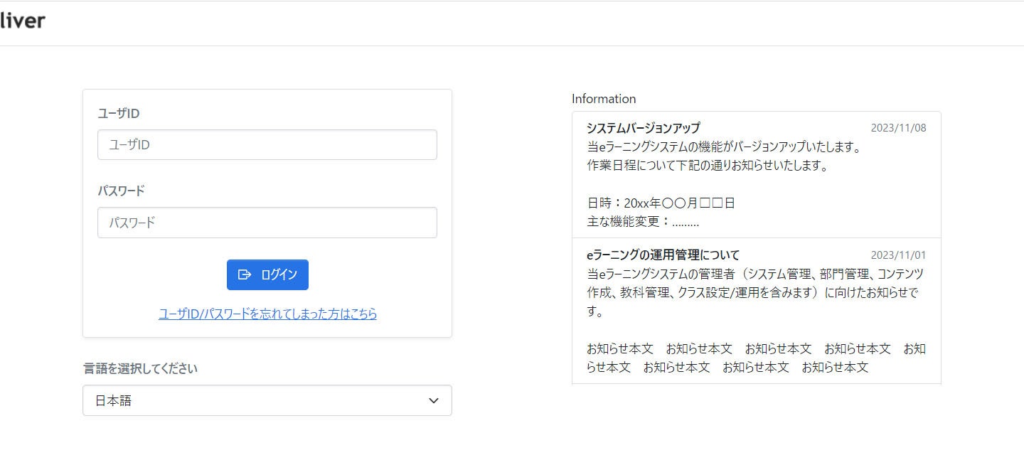 学習者側、管理者側の両方のログイン画面にインフォメーションを設定できる機能を追加しました。