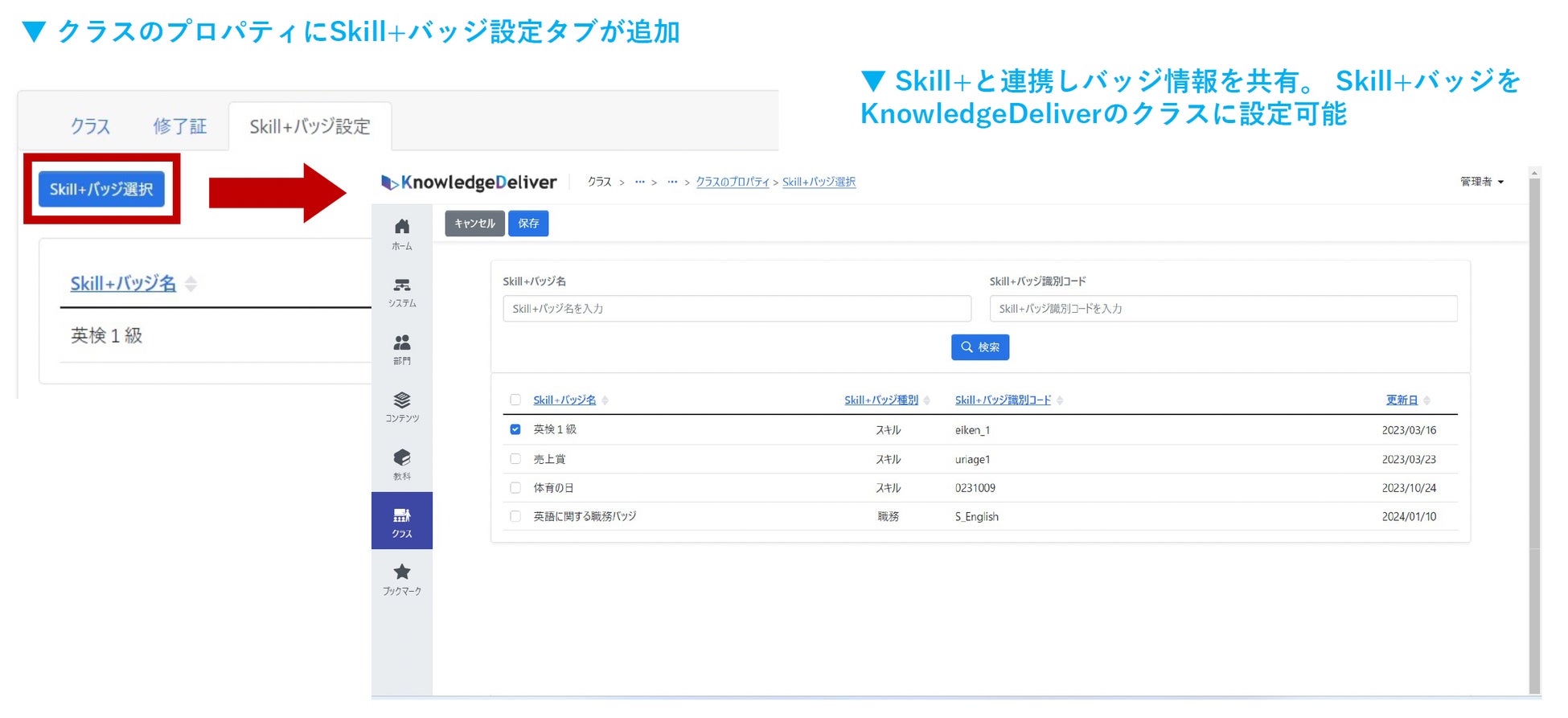 オープンバッジを活用して従業員のスキルを管理するASPサービス「KnowledgeDeliver Skill+」との連携が可能になりました。