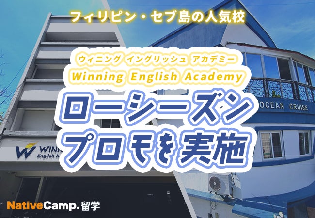 ネイティブスピーカーと回数無制限のオンライン英会話サービス「ネイティブキャンプ英会話」を展開する株式会社ネイティブキャンプ(東京都渋谷区 代表取締役: 谷川国洋)は、海外留学エージェントサービス「ネイティブキャンプ留学」において、フィリピン・セブの人気校「Winning English Academy」にて、ローシーズンプロモを実施いたします。