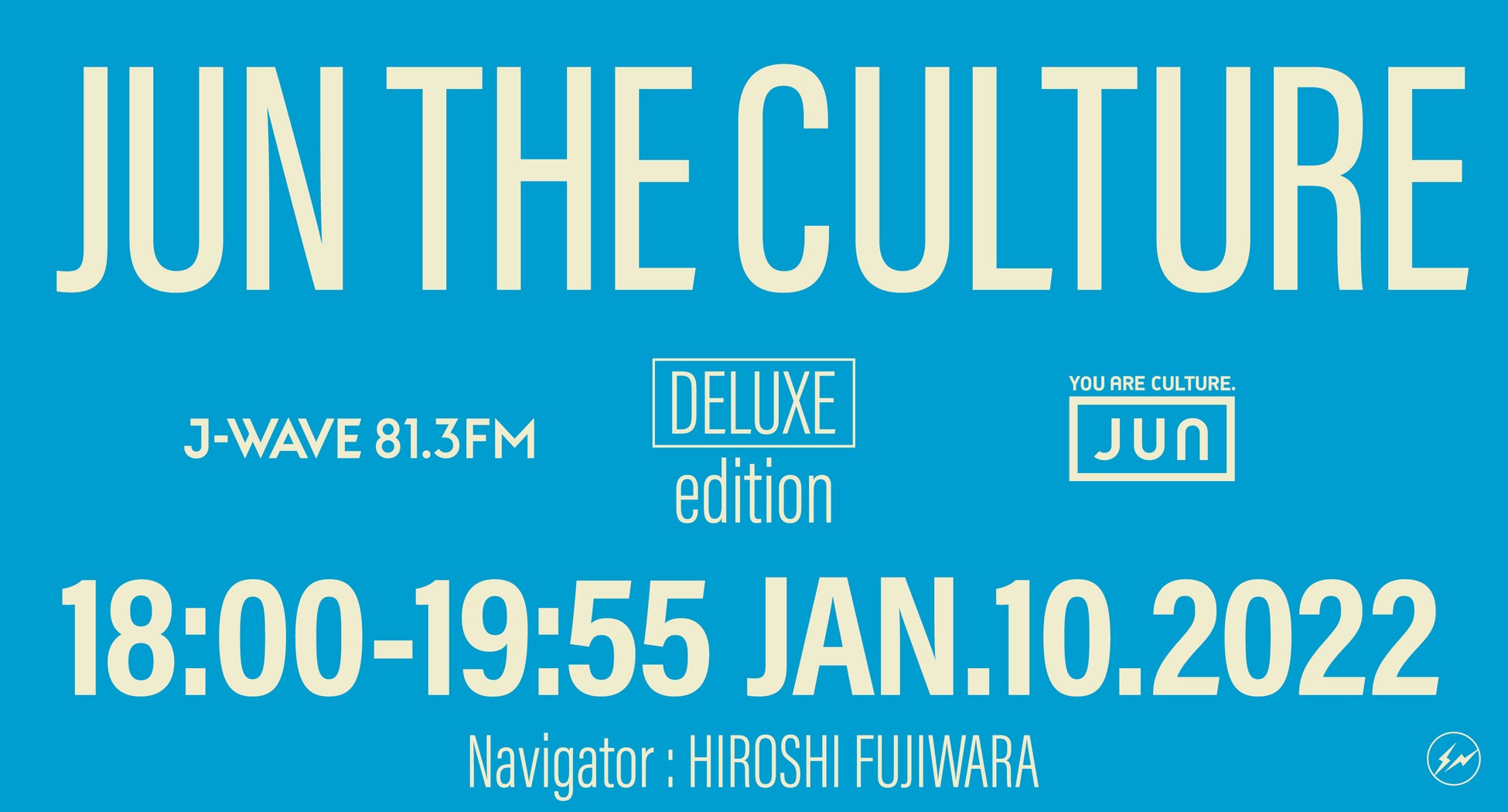 J-WAVEの土曜日・午後のレギュラー番組「JUN THE CULTURE」では、クリエイター・藤原ヒロシが独自の視点でセレクトしたアート/デザイン/ファッションのトピックスと、ジャンルレスなミュージックをお届け。1月10日の特番は、この“DELUXE EDITION”として、2時間に拡大して放送いたします。