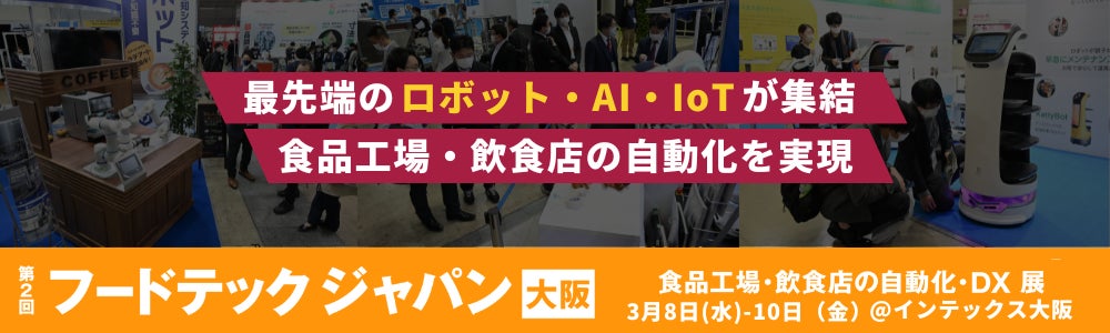 RxJapan株式会社(本社:東京都新宿区、代表取締役社長:田中 岳志)は3月8日[水]~10日[金]の3日間、インテックス大阪にて食品工場/飲食店向け 自動化・DX展「第2回 フードテックジャパン 大阪」を開催いたします。