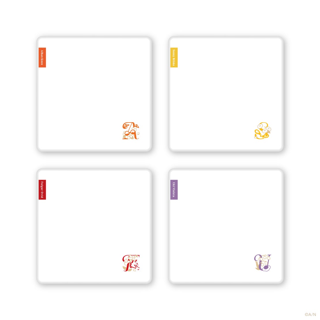 ラインナップは、デフォルメビジュアルを使用したフロッキーマスコット、撮りおろしビジュアルを使用したアクリルスタンド、ランダム缶バッジ、ランダムカード、クリアファイル。さらに、モチーフデザインを使用した巾着、ハンカチの計7種。