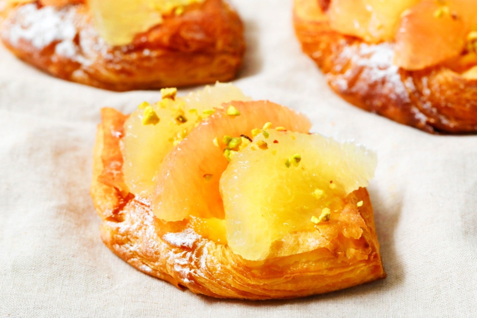 こだわり:2種類のグレープフルーツのコントラストが目を引くデニッシュ。発酵バター香るデニッシ