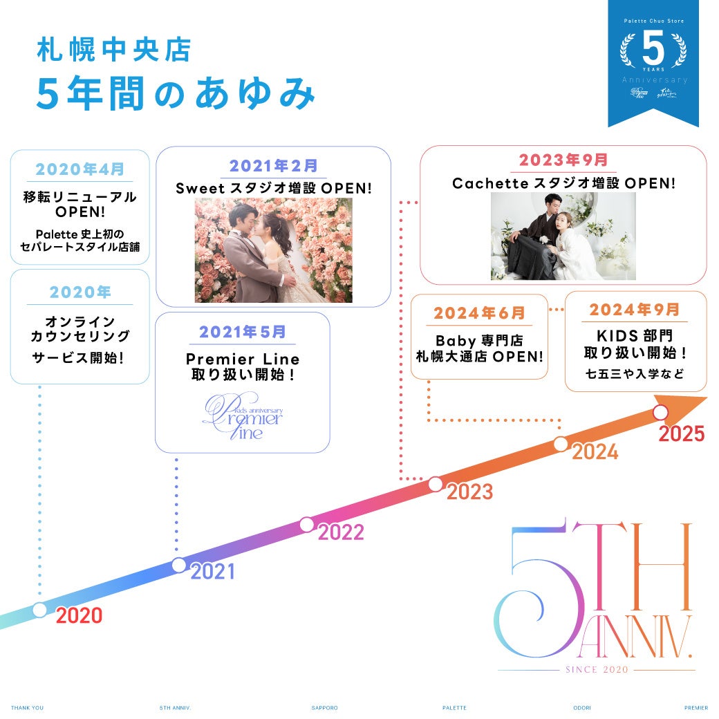 北海道札幌市中央区にあるフォトスタジオ、写真工房ぱれっと札幌中央店・大通店は2025年で移転5周年を迎えます。感謝の気持ちを込めて、5周年アニバーサリーフェアの開催が決定!