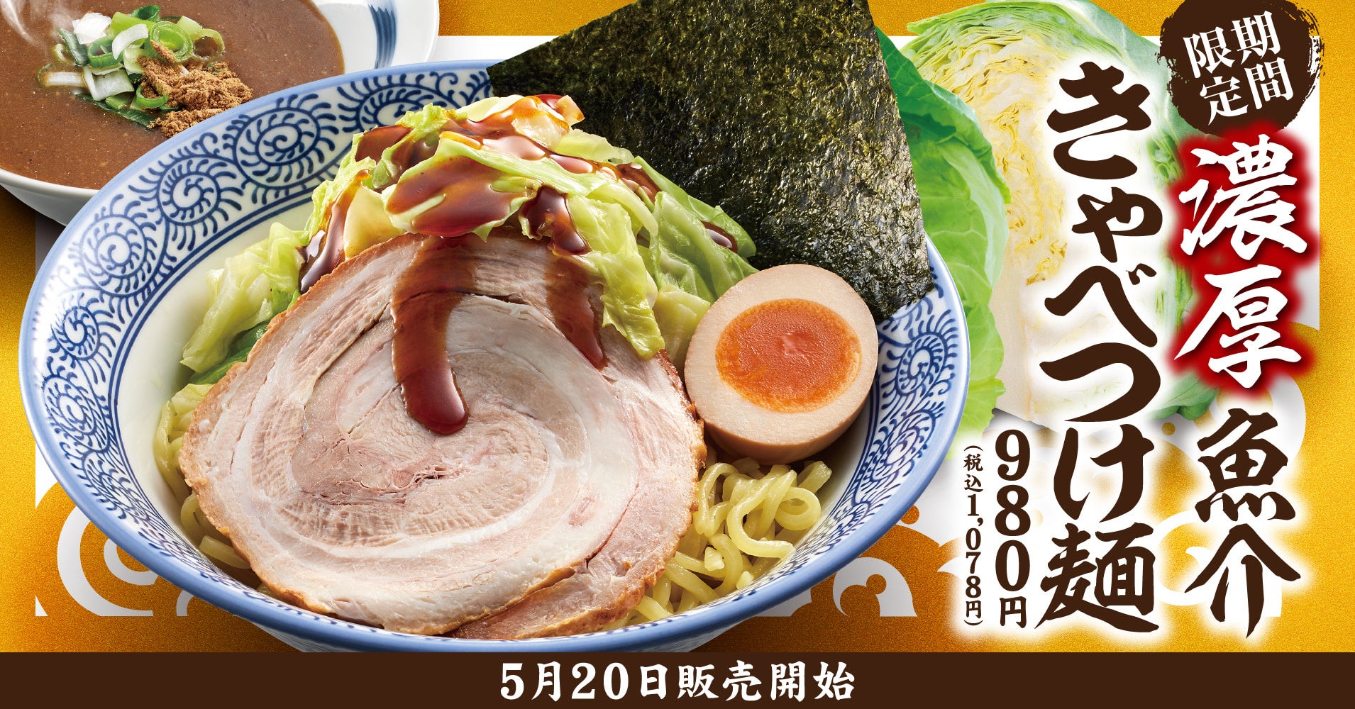 株式会社物語コーポレーション(本社:愛知県豊橋市/代表取締役社長:加藤 央之)が運営する『熟成醤油ラーメン きゃべとん』(以下、きゃべとん)は、2025年5月20日(火)より、期間限定メニュー「濃厚魚介 きゃべつけ麺」を販売いたします。