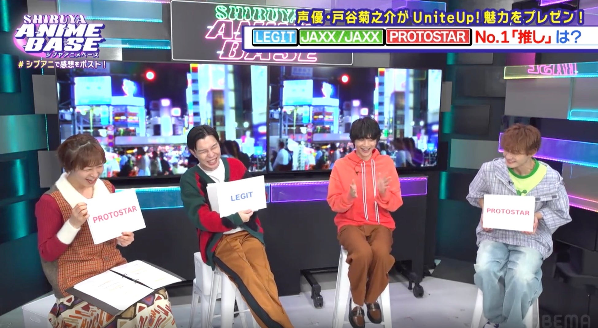 2023年にスタートしたアニメは、2025年1月より第2期に突入。第2期では、PROTOSTAR、JAXX/JAXX、LEGITの3組によるリリースバトルが繰り広げられています。今回、戸谷さんが『シブアニ』にて各ユニットの推しポイントを1分間の時間制限付きでプレゼンしました。
