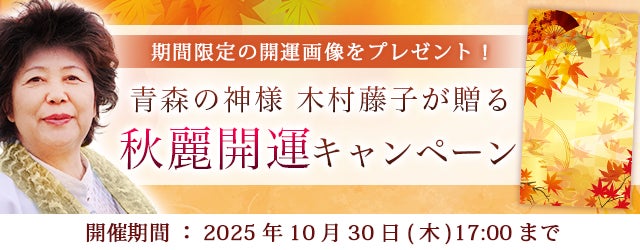 数々の透視的中で一世を風靡した「青森の神様」木村藤子の公式サイト『木村藤子◆幸せの条件』では、本格的な秋の訪れを前に、心を落ち着けて過ごすことができるよう「秋麗開運キャンペーン」を開催中です。