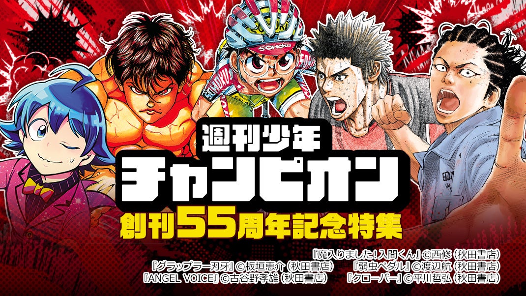 秋田書店週刊少年チャンピオン創刊55周年記念特集が7月19日からスタート!期間中は人気作品のほぼ全巻無料施策やクーポン施策も開催!