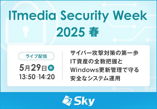 Sky株式会社は、5月26日(月)~ 6月2日(月)に開催されるライブ配信セミナー「ITmedia Security Week 2025 春」に協賛いたします。