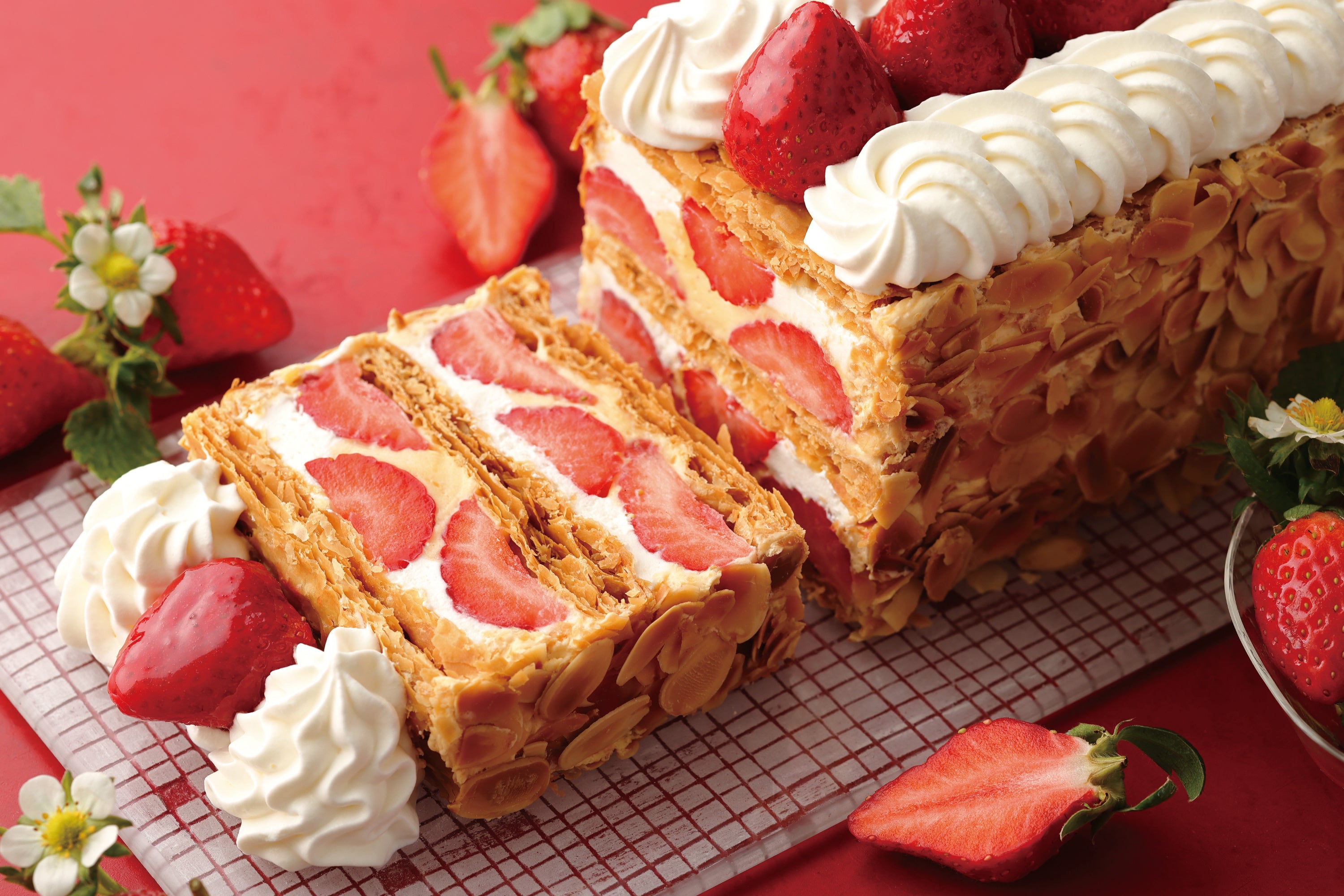 【キハチ 青山本店】甘くみずみずしい真っ赤な苺“あまおう”のナポレオンパイを発売!苺パフェ、苺タルトなどスイーツ10種&セイボリー3種が楽しめるアフタヌーンティーも