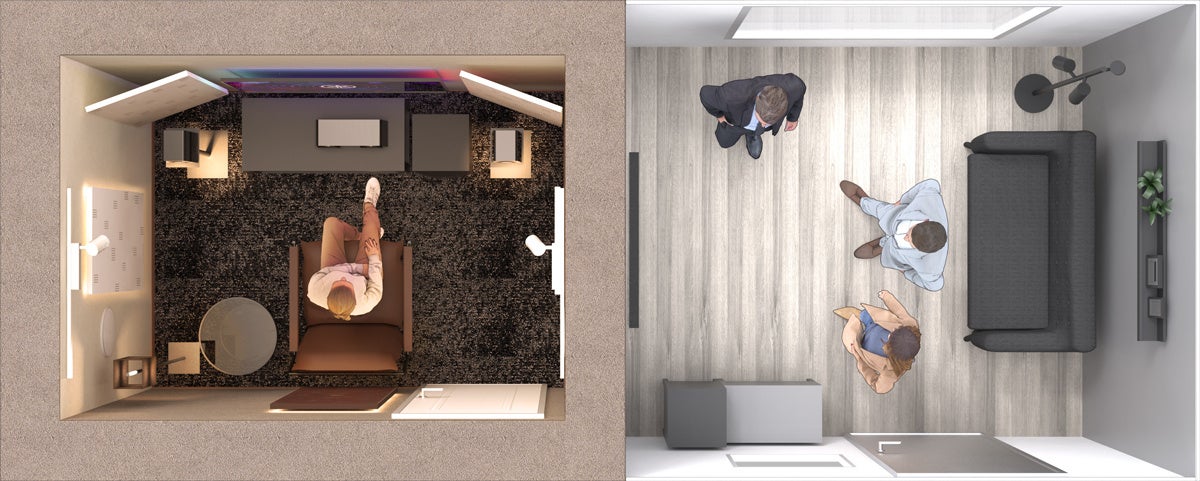 一般的に、小さな空間の中で心地よい音に包まれながら映画を楽しむことは難しいと思われがちです。『旅する防音室』では、トレーラーハウス内部を2部屋に分け、1部屋ではアビテックスフリータイプと調音パネルを組み合わせることで「迫力のある音」のシアタールームを体験いただけます。もう1部屋はリビングをイメージし、隣接するシアタールームからの音が部屋や屋外でどの程度聞こえるかを体感いただくことで、防音室導入後の遮音効果をリアルにイメージすることができます。