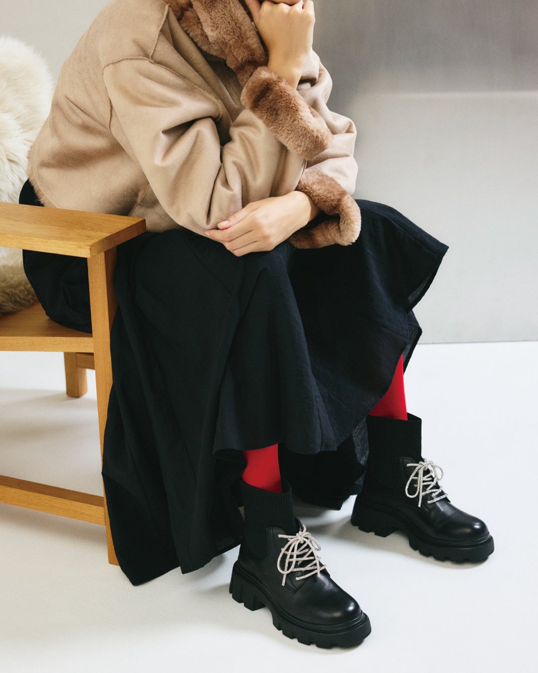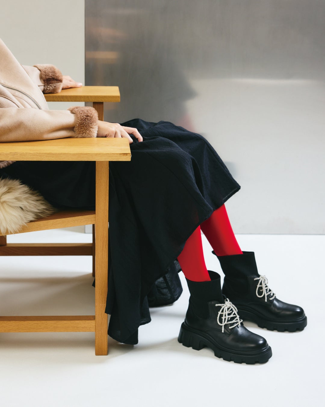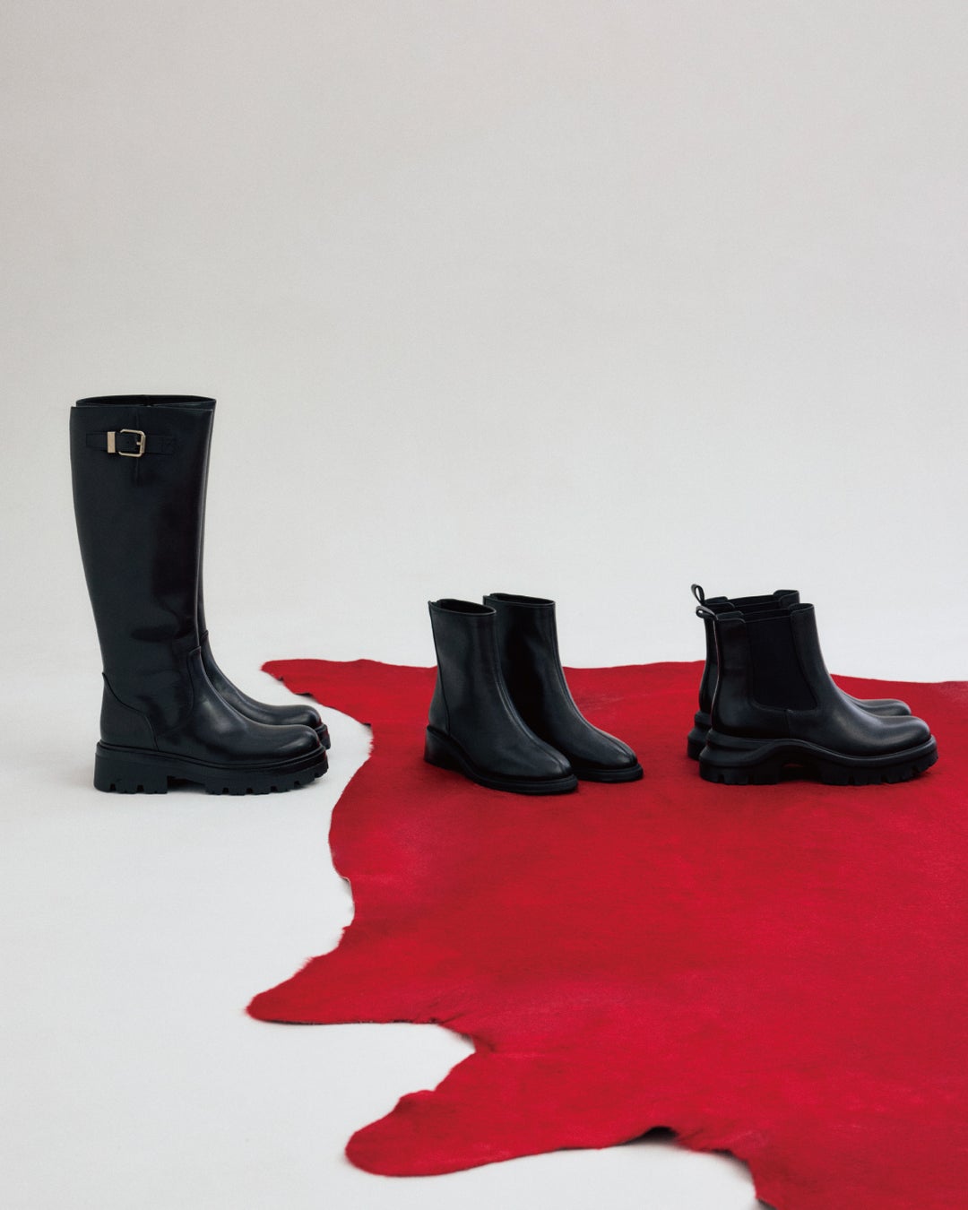 レッド・ブラウン・ベージュをキーカラーに、スタイリングやプロップスへ散りばめることで、冬のブーツを引き立てるコレクションに仕上げました。