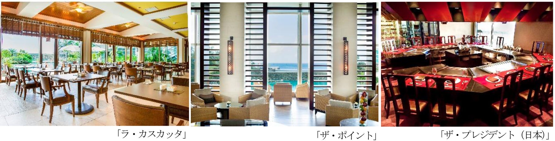 全5店舗。インターナショナルな料理を味わえ、グアムならではのダイナミックなショーが楽しめるビュッフェやBBQ、観光客やローカルにも人気の鉄板焼・日本料理など幅広いラインアップ。