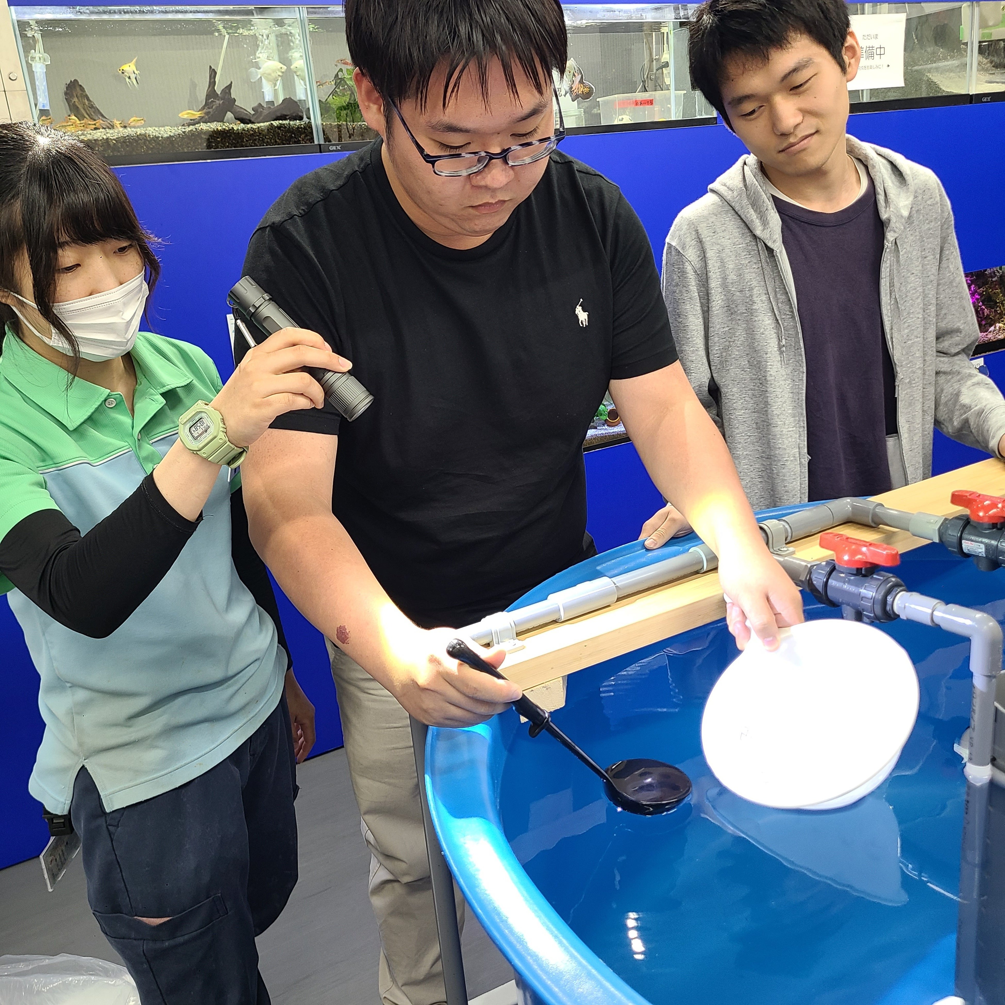 今年度は、5月から、日本ペット&アニマル専門学校の生物産業科の学生および、TCA東京ECO動物海洋専門学校の水族館プロデュース専攻の学生に対して、それぞれの学校別のカリキュラムに沿って、当館のクラゲ飼育担当スタッフによる講義を行い、水族館でのクラゲ飼育体験や、クラゲの赤ちゃんの育成・繁殖などの実践的な学習を通し、学生にクラゲの飼育方法を学んでもらいました。
