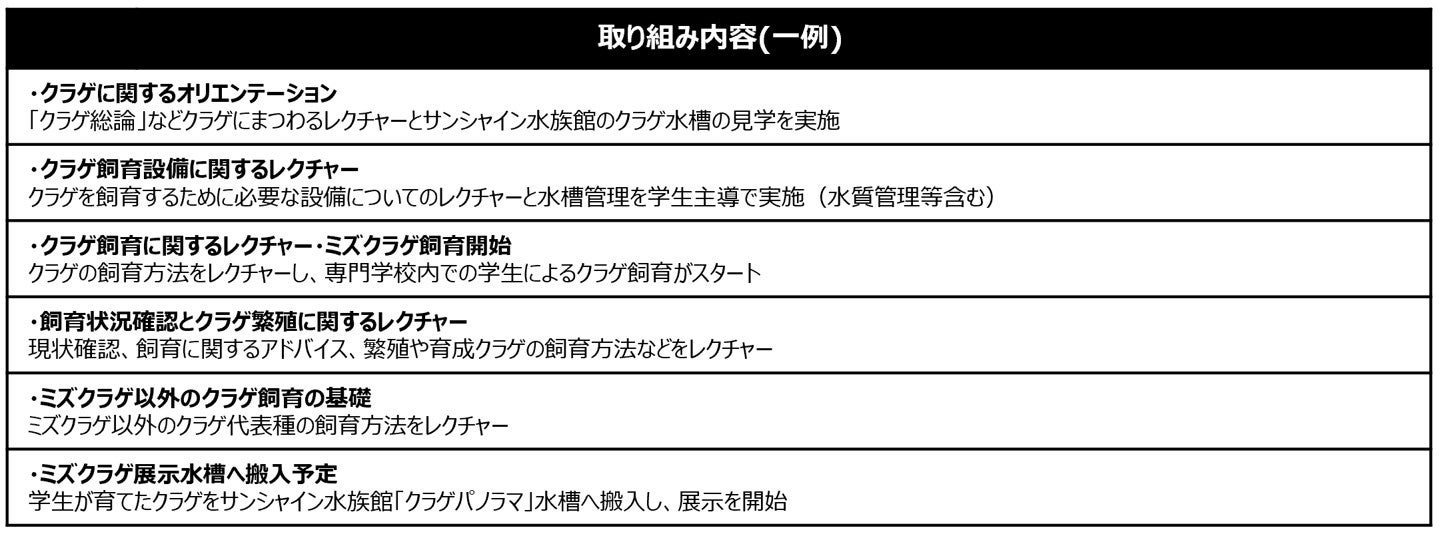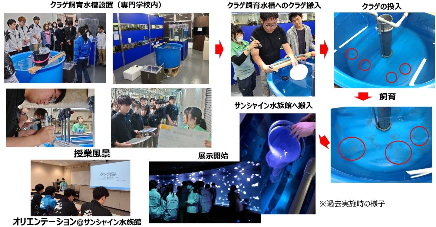 サンシャイン水族館(東京・池袋)は、将来の水族館業界を担う人材を育成する一助となることを目的として、2020年より毎年、動物関連の仕事の就職を目指す専門学校に向けて、学内や実践現場にてミズクラゲの飼育や水槽管理についての講義などを実施し、水族館の仕事やクラゲ飼育の体験をしてもらうための機会を提供しています。