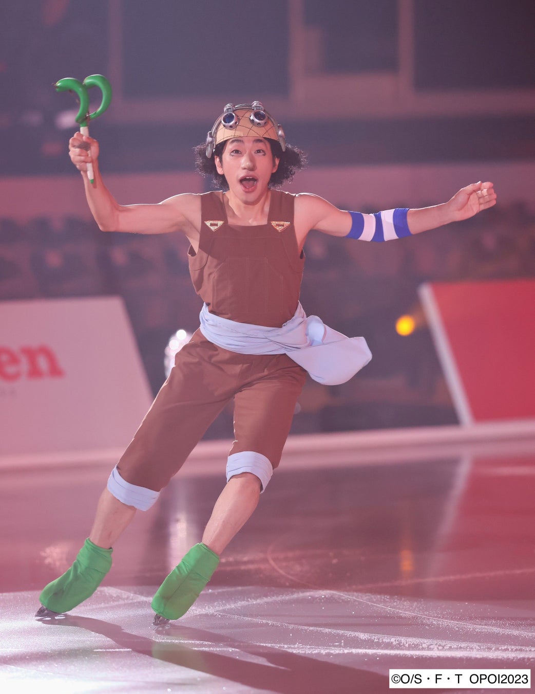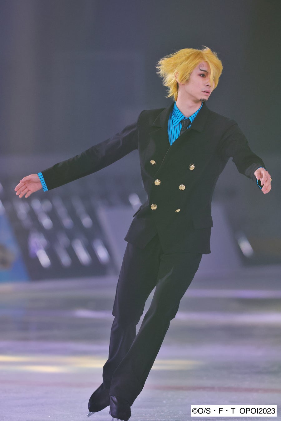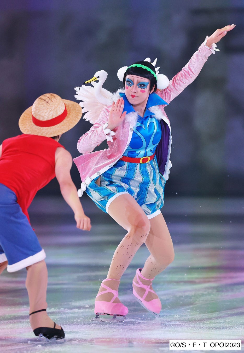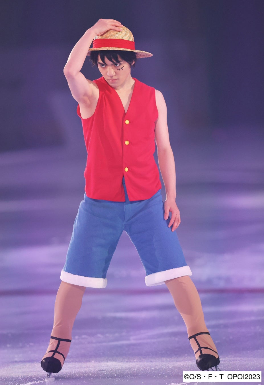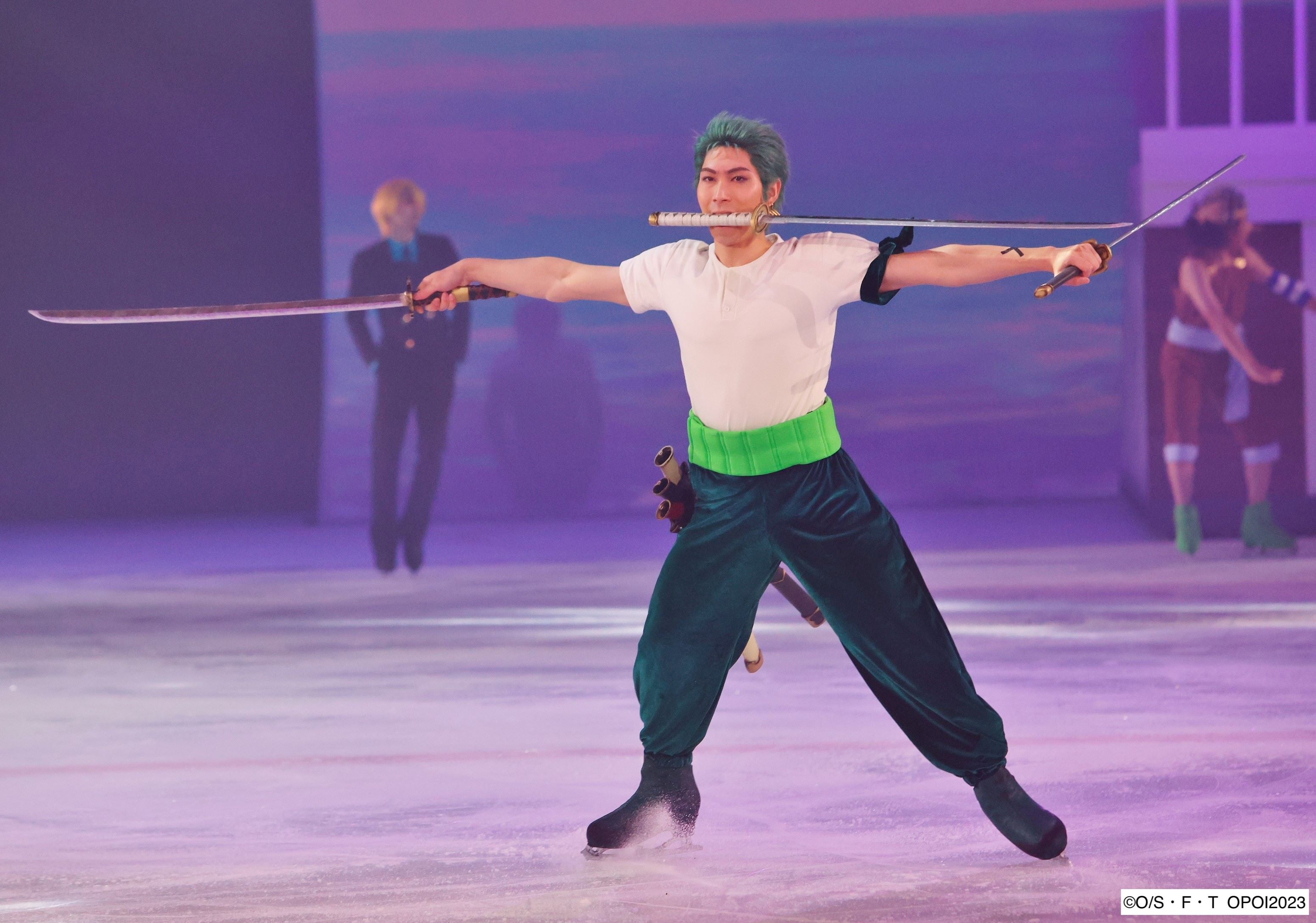 先ごろ行われた横浜公演では、『ワンピース』の大ファンというキャストたちが配役になりきり、声優の台詞や効果音に合わせてアクション満載の演技を披露した。普段はシャイな宇野昌磨がまったくイメージの異なるルフィを笑顔全開で表現したり、田中刑事が刀を咥えながら見事な殺陣を見せたり、マンガから抜け出してきたような等身の島田高志郎がサンジそのものの動きを見せるなど、スケーターの役者ぶりが評判となっている。