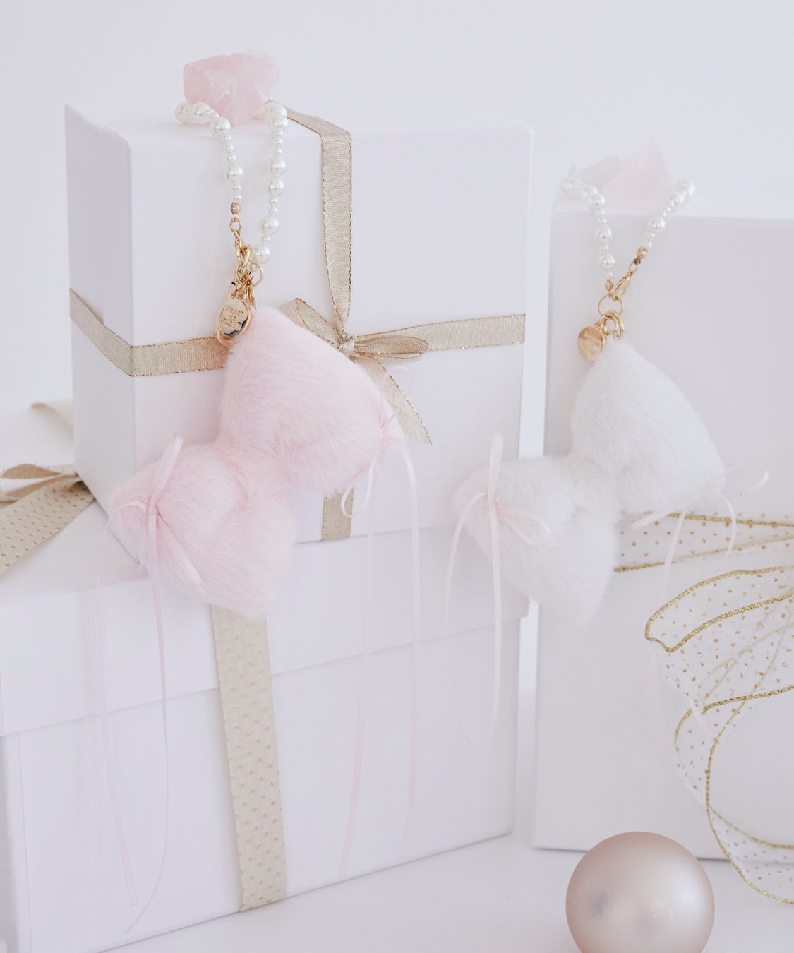 本コレクションの注目アイテムは、ホリデーギフトにぴったりなバッグチャームです。人気のラビットチャームや、ブランドアイコンのリボンにパールやビジューを組み合わせたチャームなど、冬のおでかけシーンを煌びやかに演出してくれる全7型をラインアップしております。
