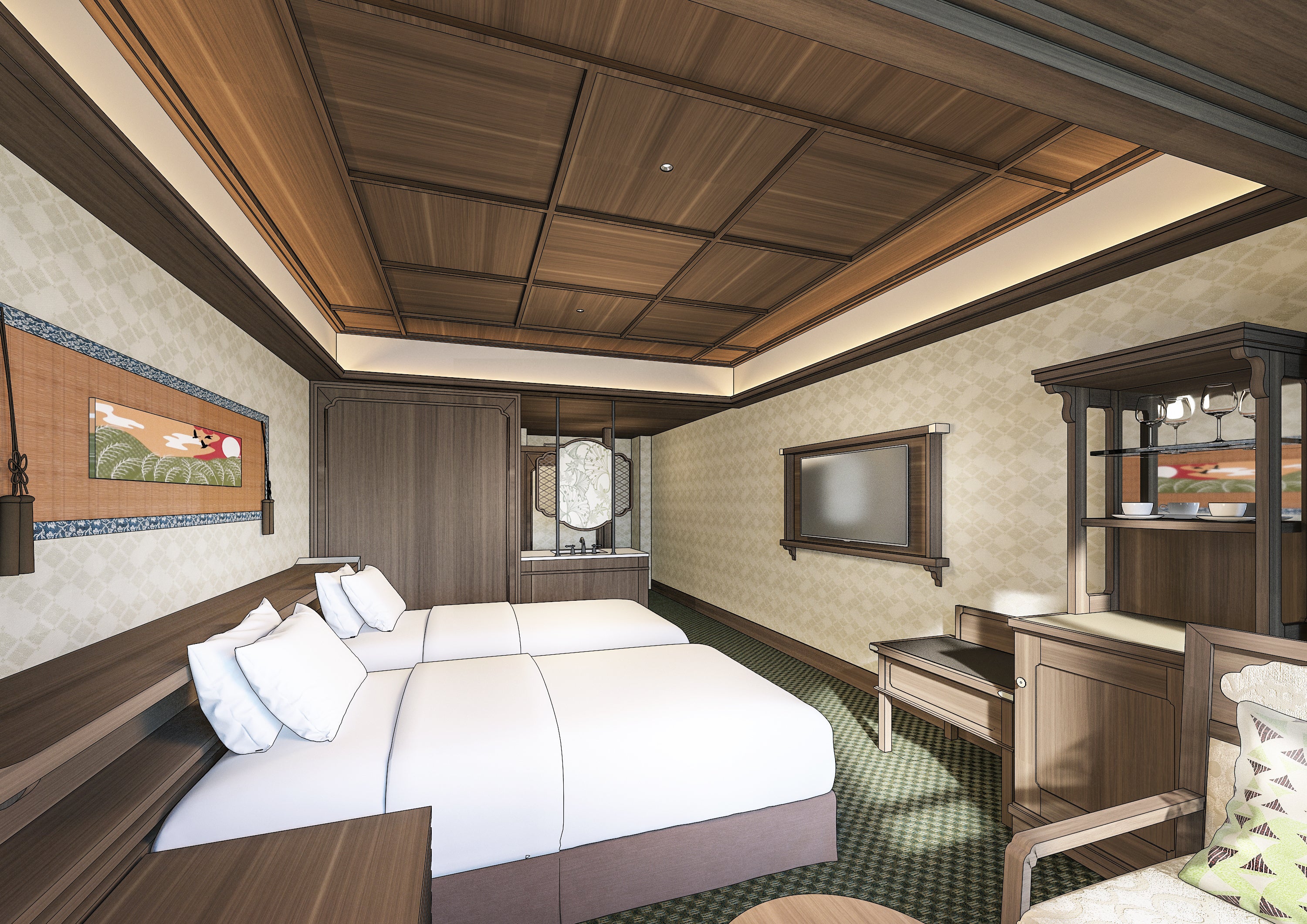 この度公開した特設ページでは、本館のクラシックな意匠とのつながりを感じられるデザインとして現代的に再解釈された客室をはじめ、日本料理「花菊」が業態を新たにオープンする鉄板焼レストラン、そして、伝統とモダンが調和するシックな宴会場について、完成イメージパースとともに紹介しています。