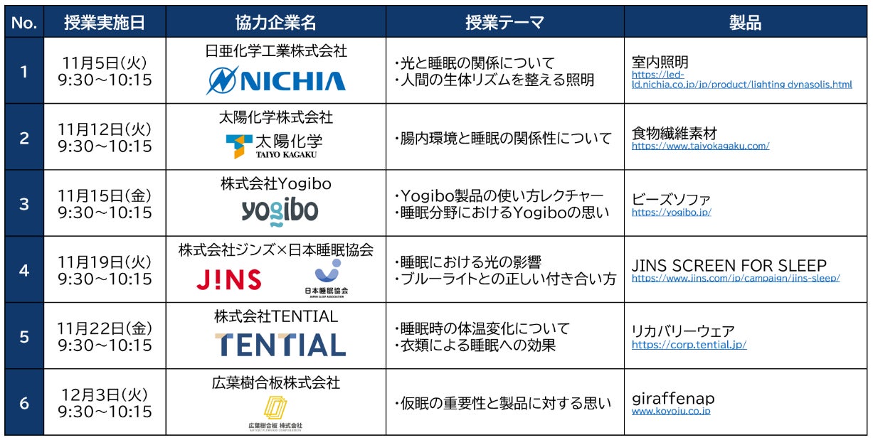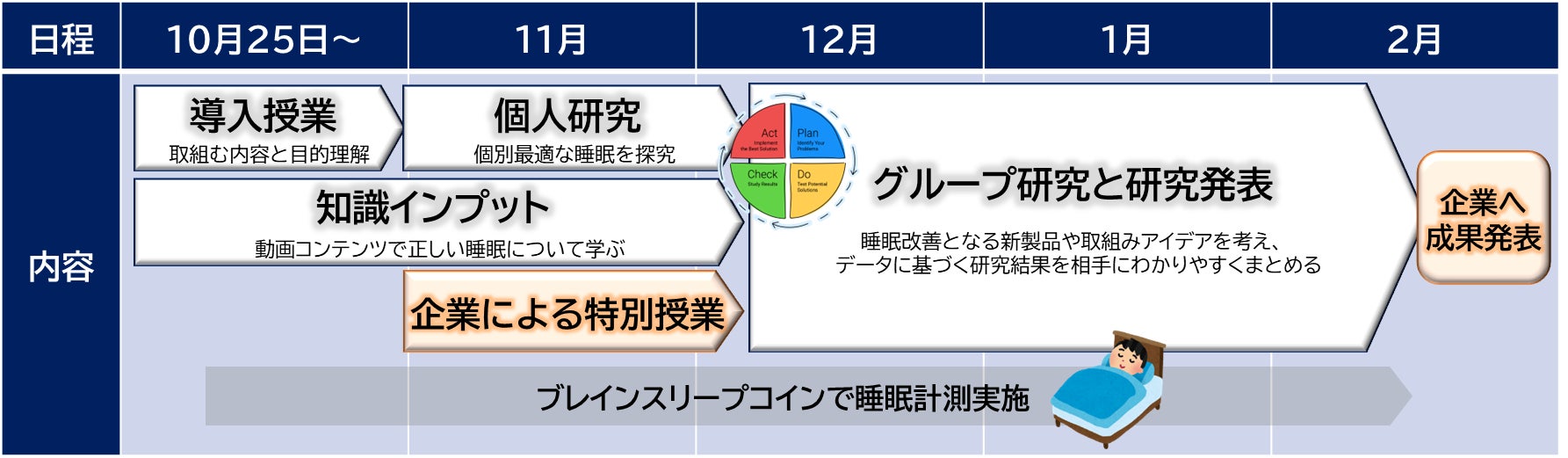 また、昨今、文部科学省や経済産業省が推進し注目されているSTEAM教育のテーマとしても最適であるという観点から、睡眠関連の製品やサービスを持つ企業に協力いただく特別授業も実施します。