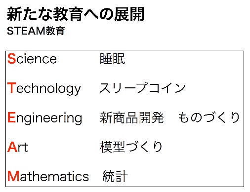 <STEAM教育に照らし合わせた睡眠授業の項目>