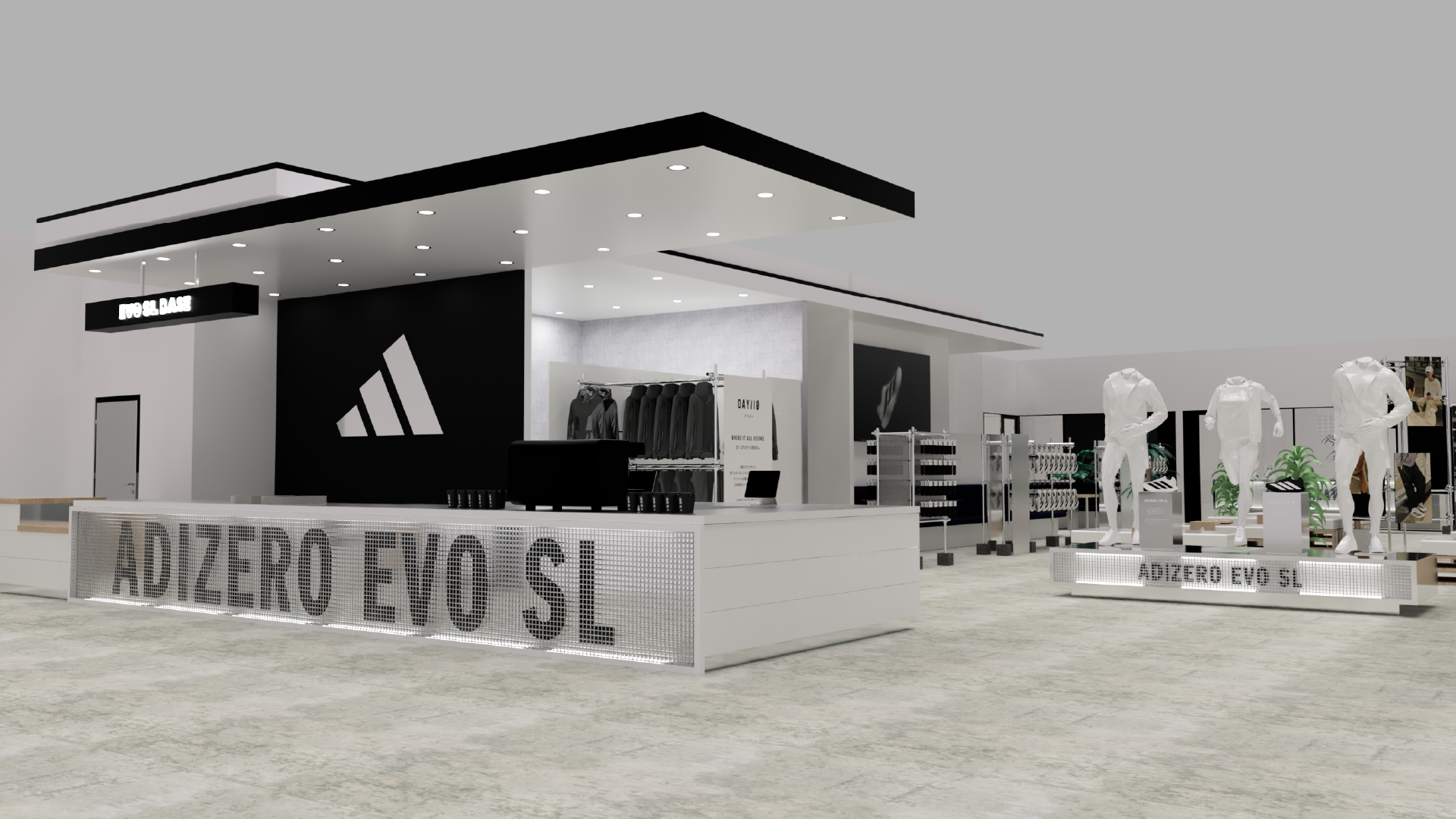 本スペースでは、アディダスが提案する新しいランニングスタイルを体験できる空間演出やコンテンツを展開し、EVO SLを通じた多様なスタイリングを紹介。