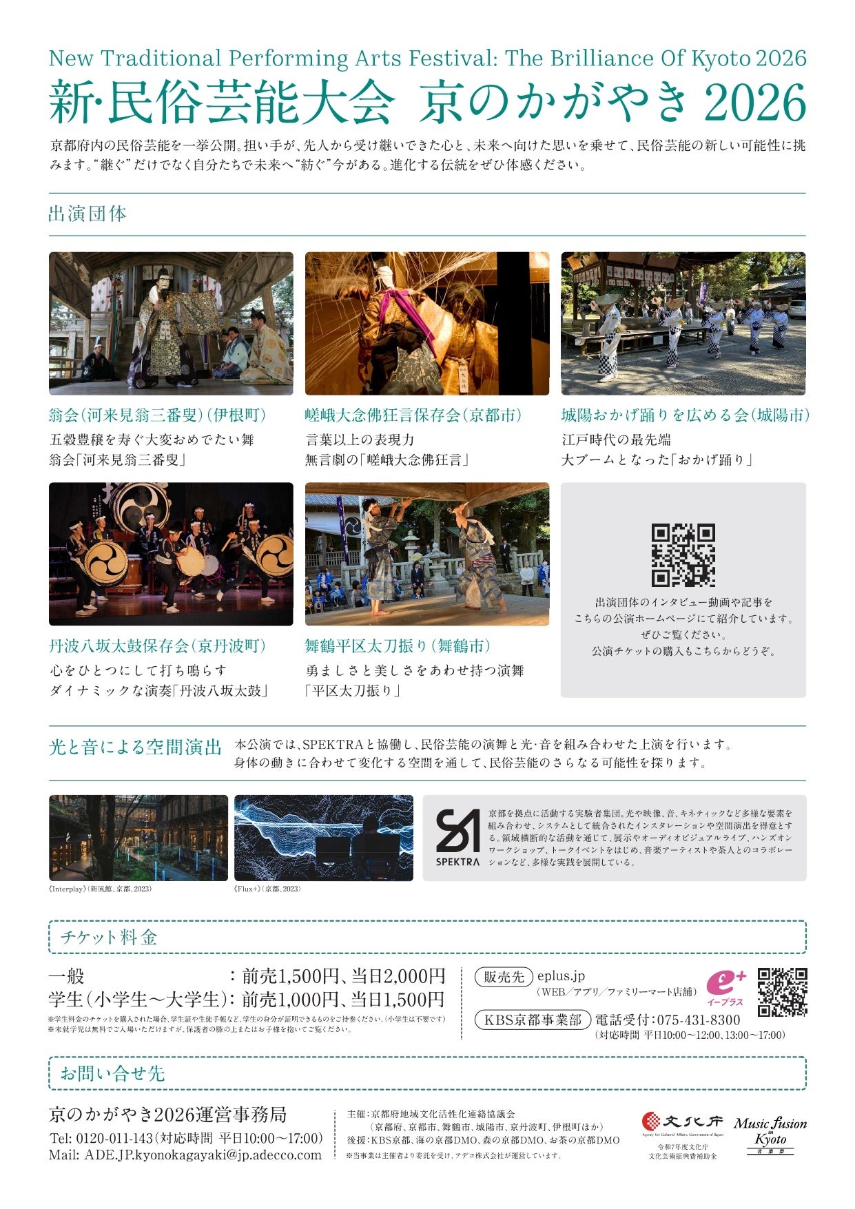 【京都府】民俗芸能×現代演出 新感覚の民俗芸能大会 ~「京のかがやき2026」観覧チケット販売開始~