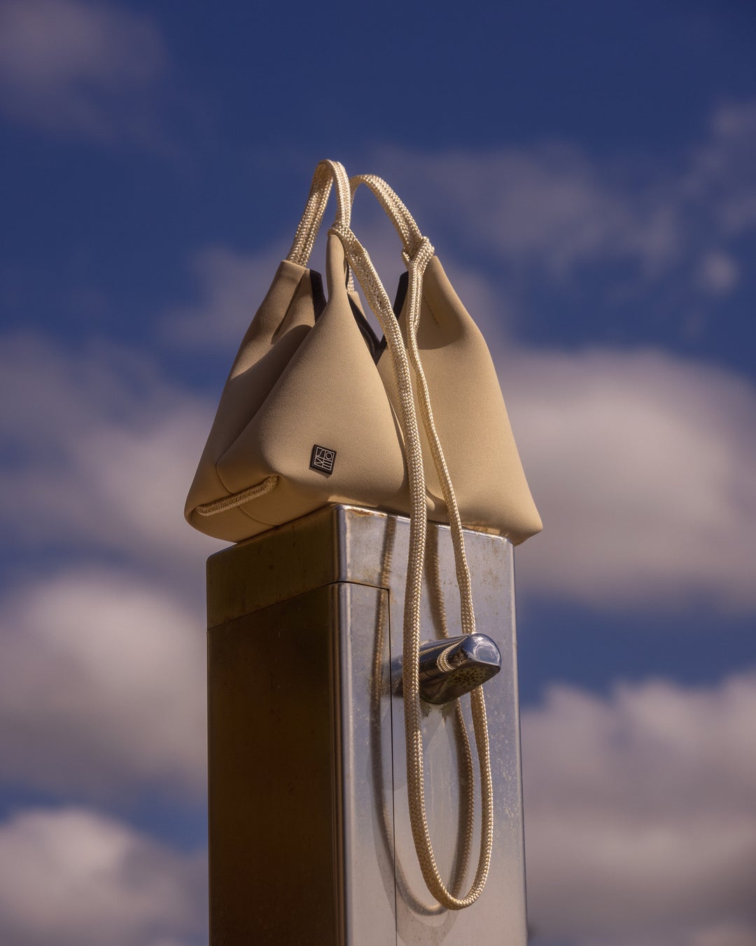 今回ファブリックにはリサイクルポリエステル(*)を採用し、従来の素材よりも柔らかくしなやかな肌当たりが特徴です。またショルダーはカスタムオーダーしたロープを使用しています。