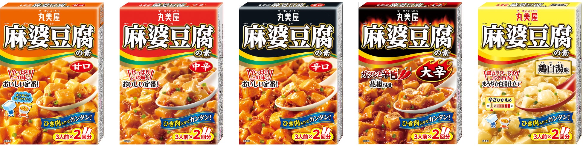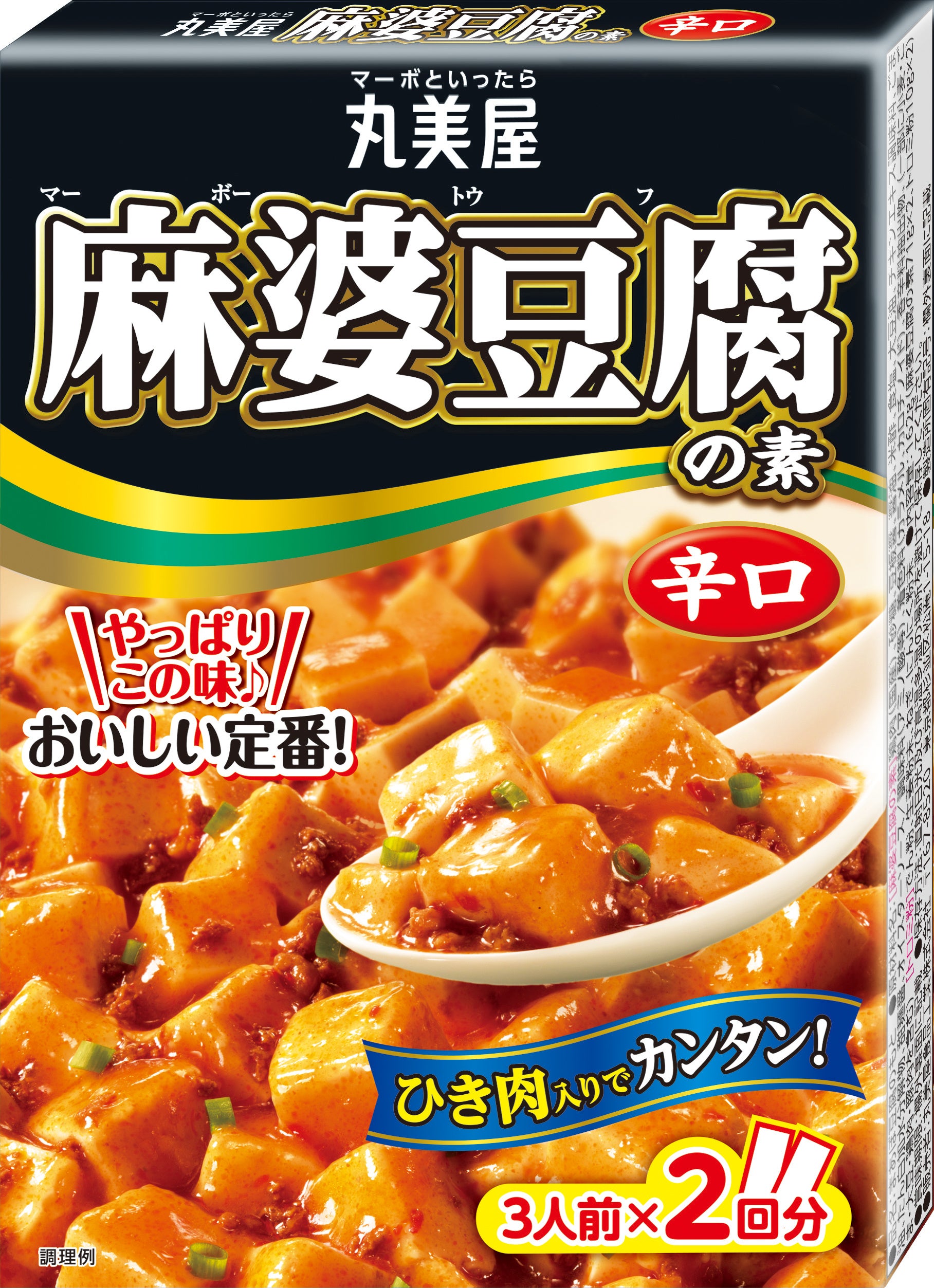 1971 年に発売した丸美屋「麻婆豆腐の素」。2026 年にお陰様で発売55 周年を迎えます。発売当時日本では、馴染みがなく、一部の中華料理店でしか食べることのできなかった麻婆豆腐をご家庭で手軽に味わってほしいという想いで発売された商品です。ひき肉入りなので豆腐を 1 丁用意するだけで、簡単に作ることができます。丸美屋オリジナルのトロミ粉付きで、3 人前×2回分入りです。商品の詳細はこちら→(https://www.marumiya.co.jp/product/series/chuka/mabo/index.html)