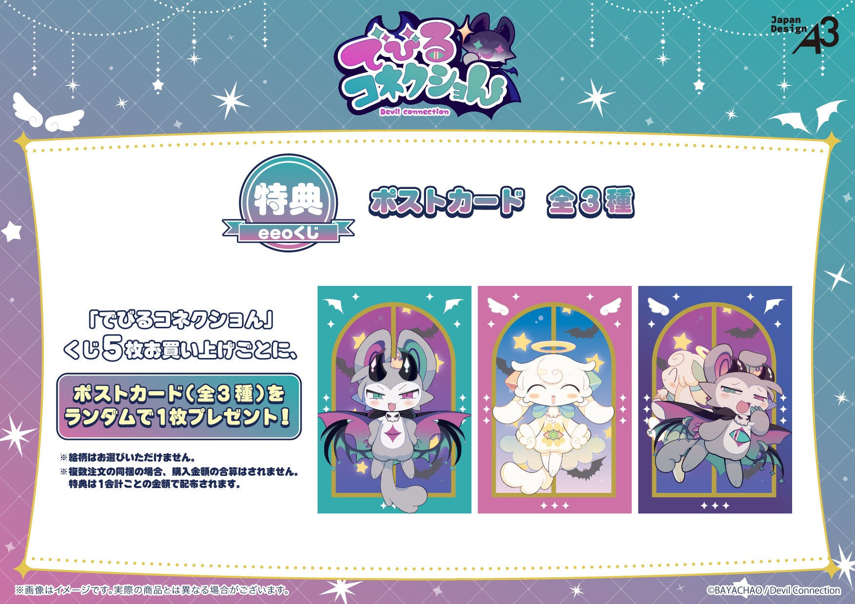『でびるコネクショん』の「eeoくじ」を1会計で5枚ご購入ごとに、ポストカード(全3種)をランダムで1枚プレゼント!