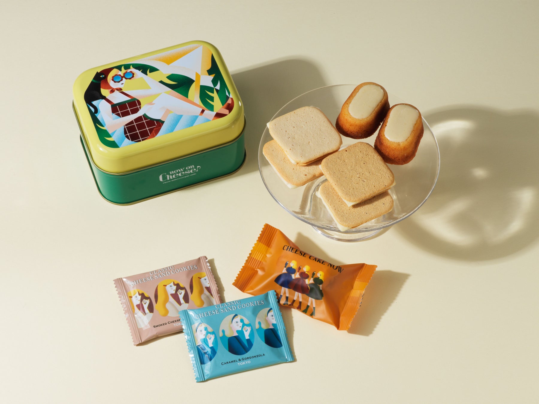 【内 容】ちいさなチーズケーキ「チーズケーキ ナウ カマンベール&エダム」と濃いチーズの味わいが特徴的なラングドシャ「クラシックチーズサンド スモークチーズ&カマンベール」と「クラシックチーズサンド カラメル&ゴルゴンゾーラ」を詰め合わせた可愛らしい夏季限定デザイン缶。小物入れにも最適なサイズ感も魅力です。
