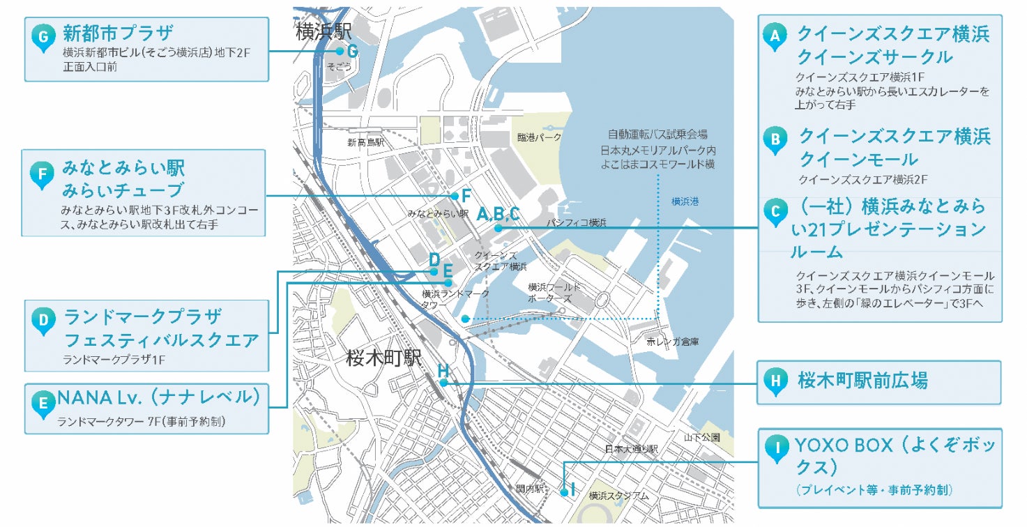 | 「YOXO FESTIVAL 2023 ~横浜でみらい体験~」 ・会期:令和5年1月27 日(金)11:00~20:00 / 28 日(土)11:00~17:00 ・内容:企業や学校、個人、イノベーター、クリエーターによる「未来」をテーマとした展示(ロボット、モビリティ、XR 等)、デモ、ワークショップ、スタートアップによる技術実証、見て・触って・あっと驚くユニークな展示、日頃の学習や研究成果の発表等。 ・参加費:無料 |