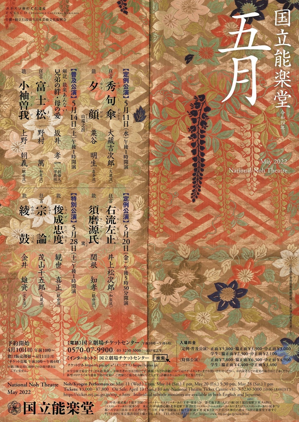 5月特別公演 『俊成忠度・宗論・綾鼓』 2022年5月28日 (土) 12:00開場/13:00開演