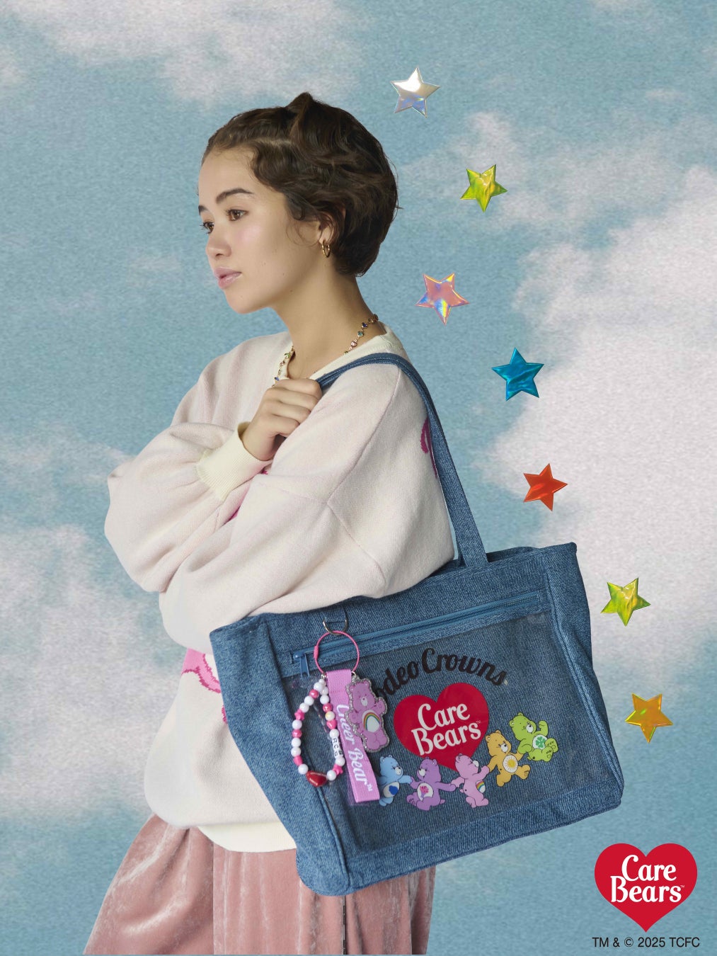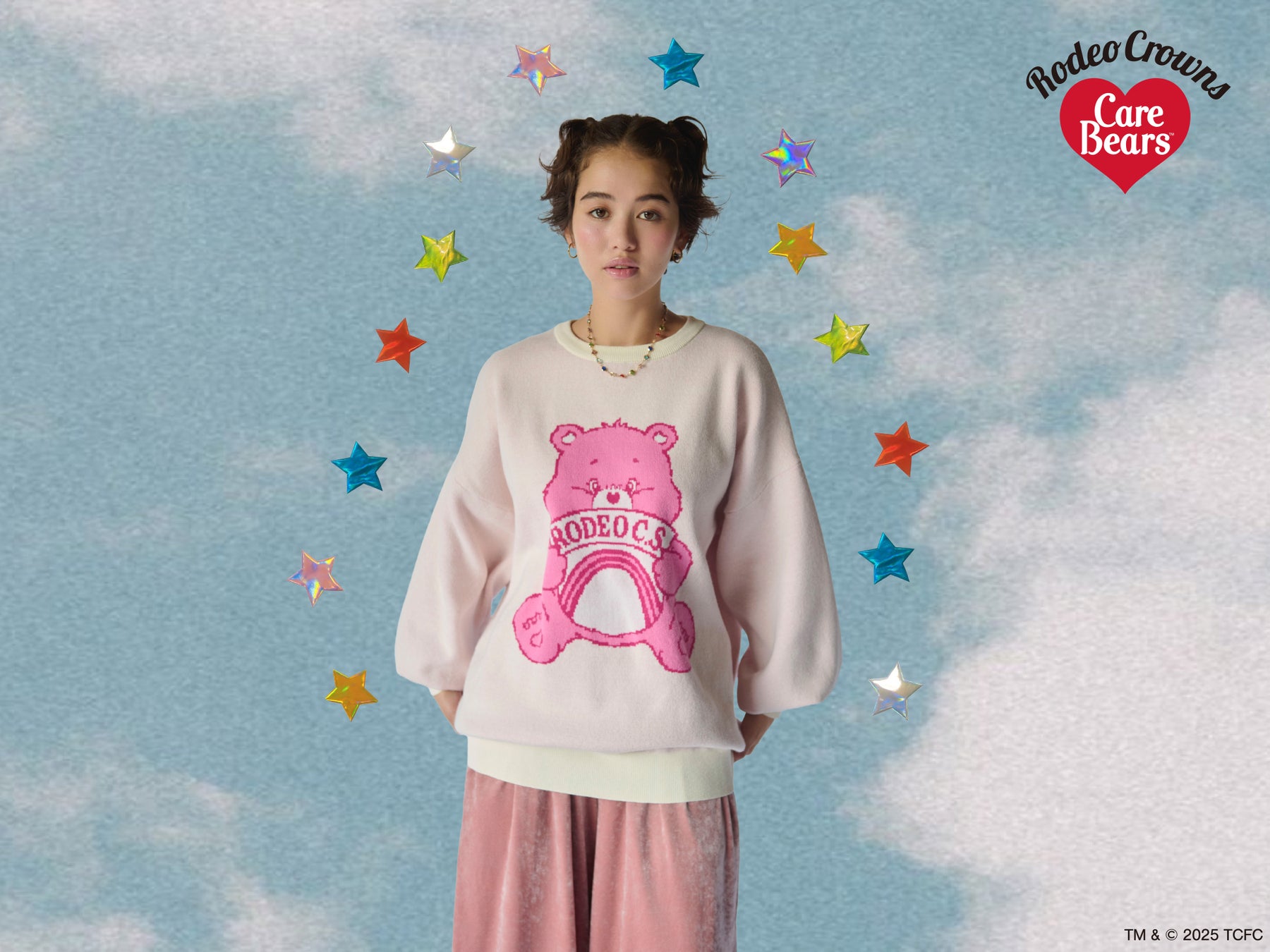 今回のコラボレーションでは、5色のケアベアのアートを採用しケアベアの持つドリーミーな世界観を、ニットのジャガードやスウェットの刺繍、ふわふわ素材の小物などで表現。また、マスコットチャームやバッジ、団扇などで装飾できるトートバッグは、普段使いにはもちろん、"推し活"にも大活躍します。