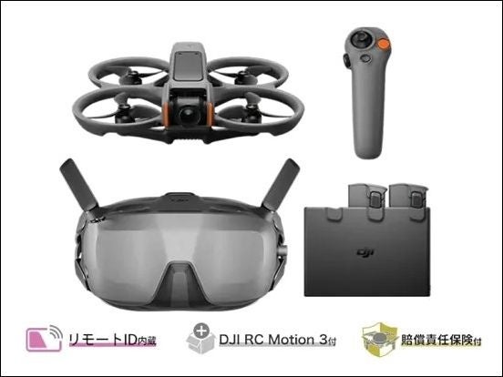 DJI Avata 2、DJI Goggles N3、DJI RC Motion 3、DJI Avata 2 インテリジェント フライトバッテリー1本などが揃ったセットです。
