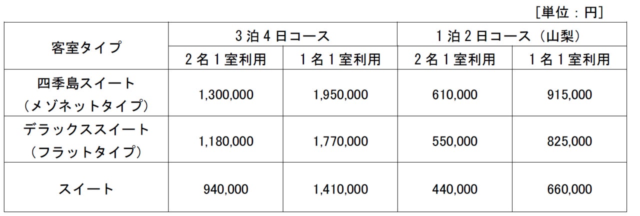 多くのお客さまからご好評をいただいている「3泊4日コース/秋」「1泊2日コース(山梨)/秋」の2つのコースを継続して設定します。
