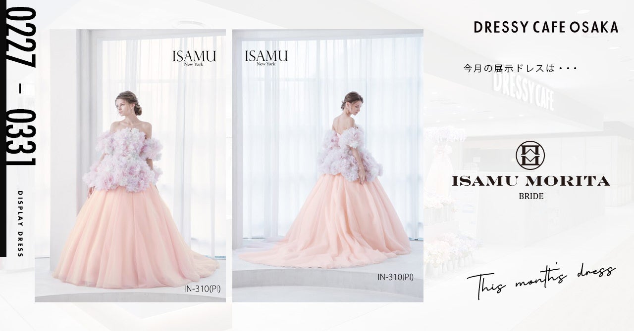 【DRESSY CAFE OSAKA】3月のディスプレイドレスは「ISAMU MORITA BRIDE」のウェディングドレスを期間限定でお届けいたします。