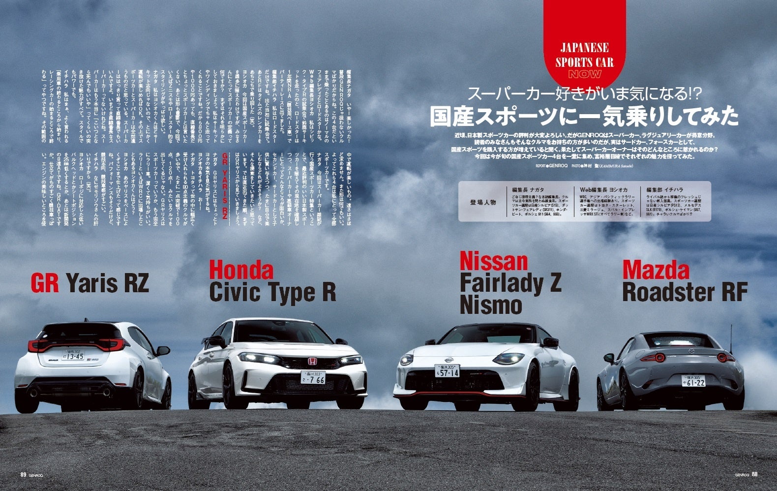 近頃、国産スポーツカーの評判がすこぶるいい。そしていまスーパーカー、ラグジャリーカーオーナーが、3台目、4台目のクルマとして国産スポーツを購入する傾向があるのだという。今回は今が旬のGRヤリス、ホンダ・シビック・タイプR、日産フェアレディZニスモ、マツダ・ロードスターを一堂に集め、それぞれの魅力を探ってみた。