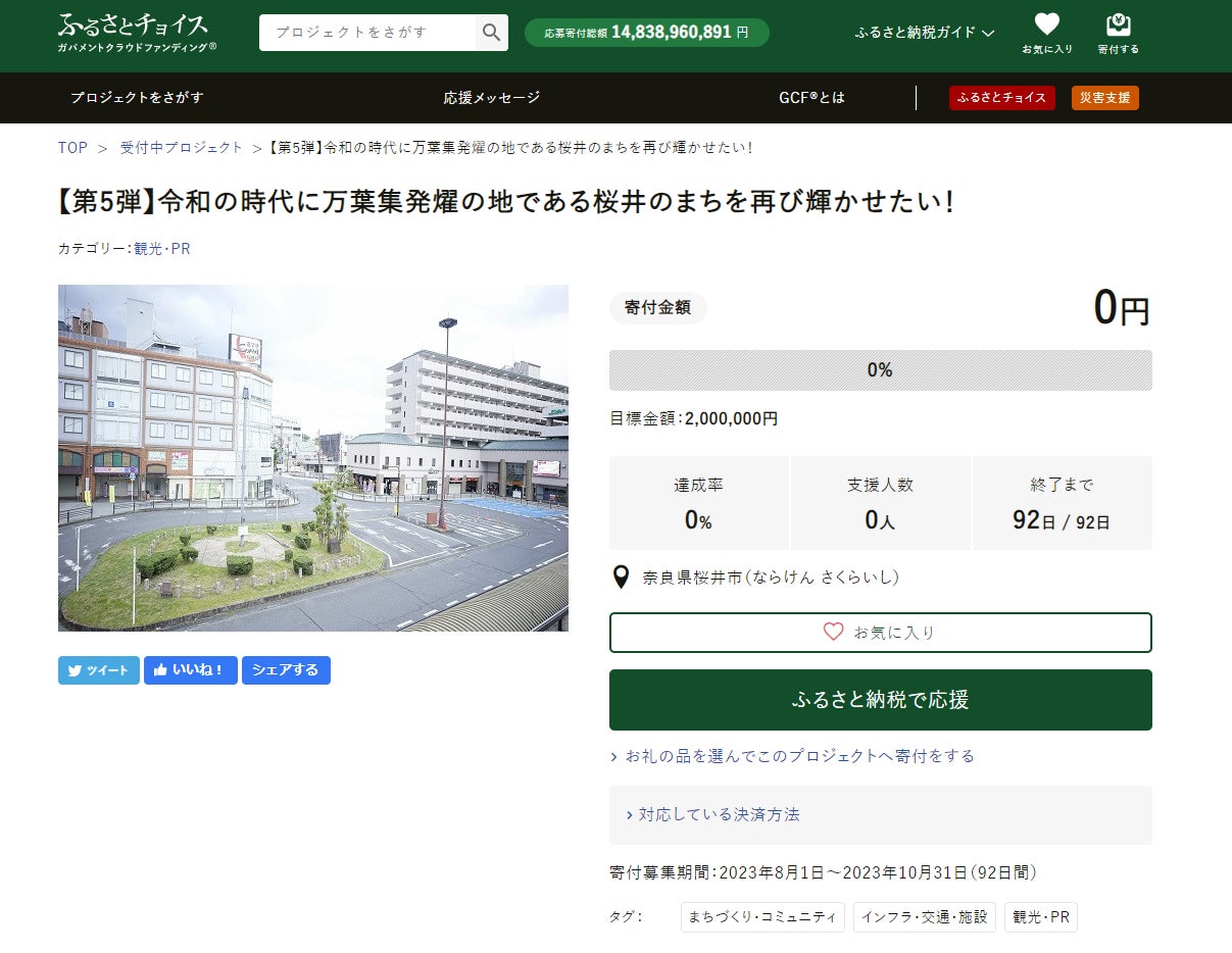 奈良県桜井市とふるさとチョイス、ふるさと納税制度を活用したガバメントクラウドファンディング®で、市の観光拠点「桜井駅前」活性化のため200万円の資金調達を開始