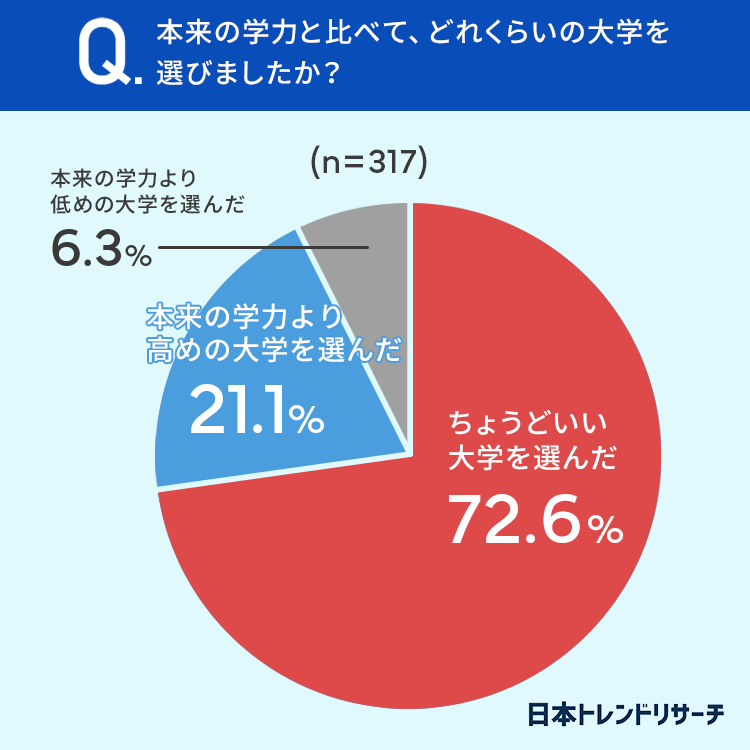 21.1%が「本来の学力より高めの大学を選んだ」と回答しています。