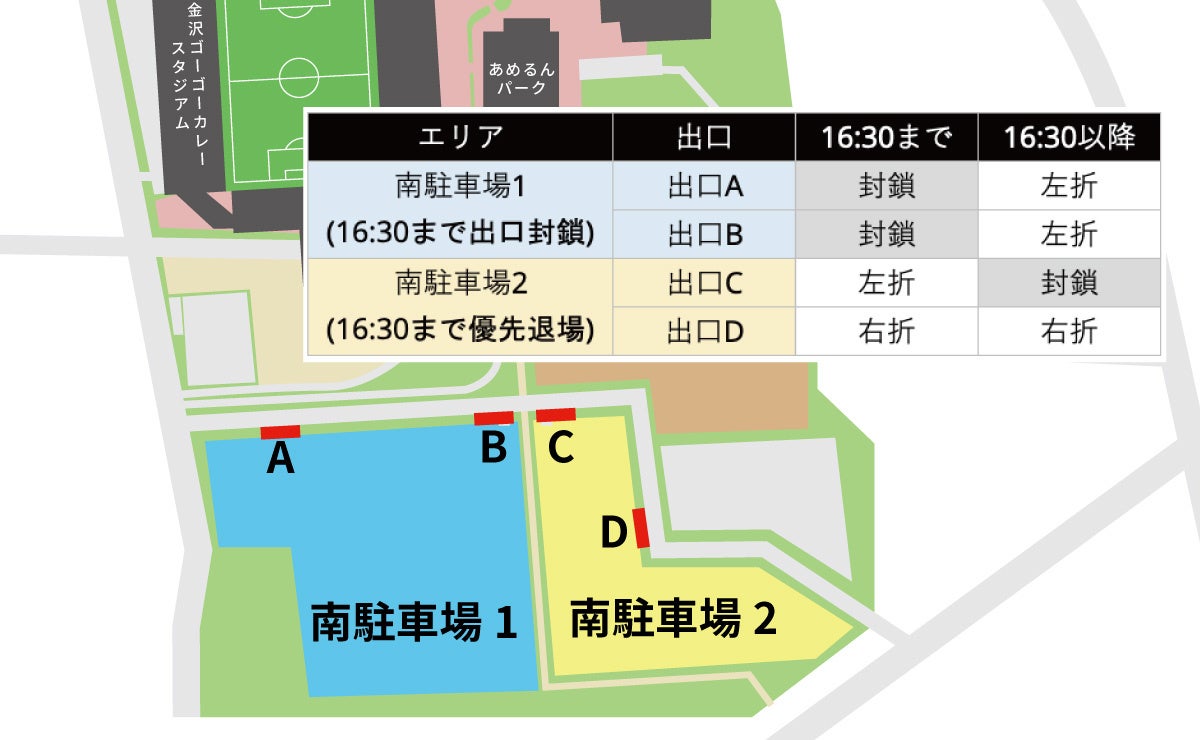 金沢ゴーゴーカレースタジアムでは、試合当日の周辺渋滞緩和を目的に、スタジアム南駐車場は事前のオンラインでの販売による有料化を行なっております。事前に駐車券をお買い求めの上、ご来場ください(精算機はございません。当日現金でのお支払い不可)