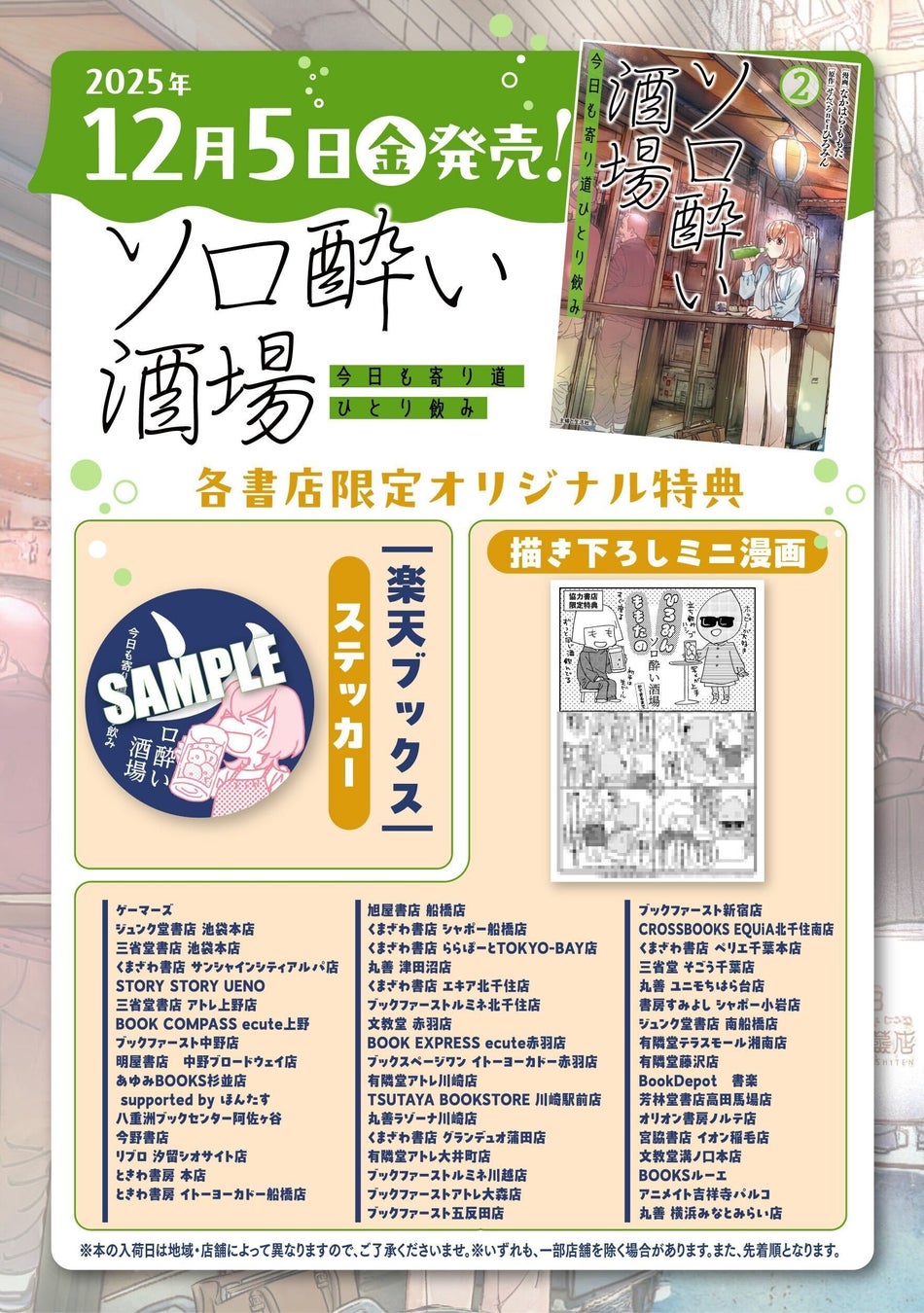 【1巻から重版出来&巡礼者続出!】読めば読むほど酒がすすむ!つまみにもガイドにもなる実在酒場漫画『ソロ酔い酒場 今日も寄り道ひとり飲み 2』12月5日(金)発売/PASH! コミックス